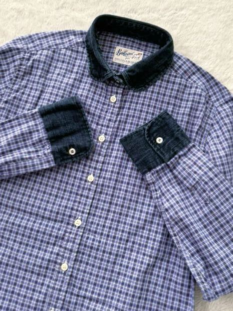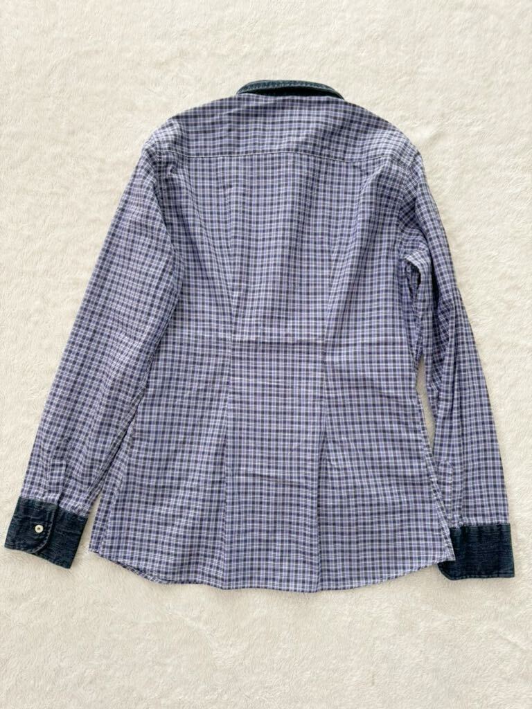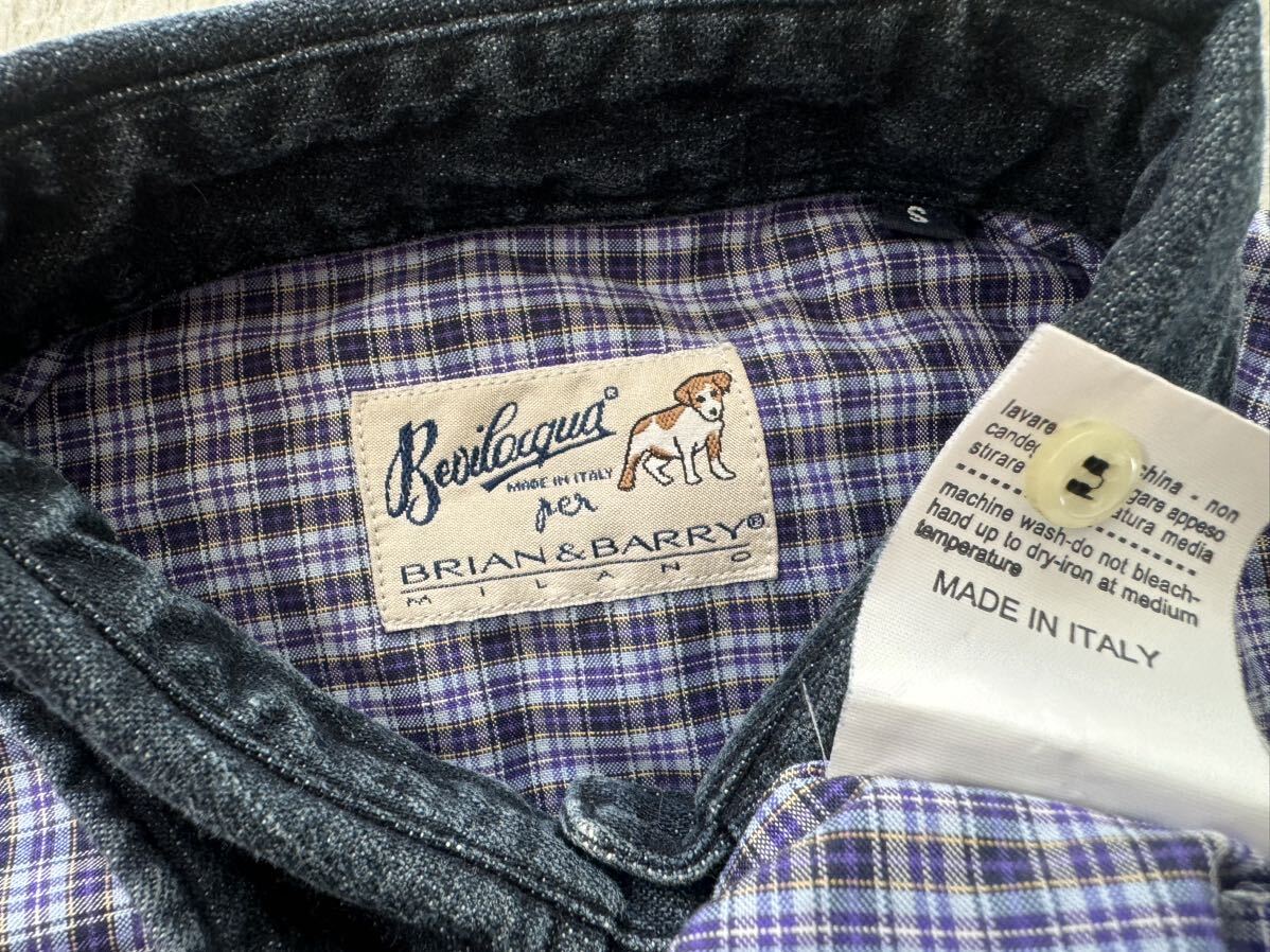 別注 Bevilacqua sizeS イタリア製 長袖 クレリックシャツ チェック デニム ベヴィラクア ベビラクア レディース