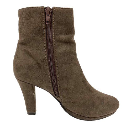 ミスティック グロウ mystic glow ショートブーツ アーモンドトゥ スエード調 無地 S 茶 ブラウン レディース