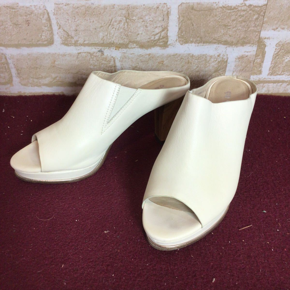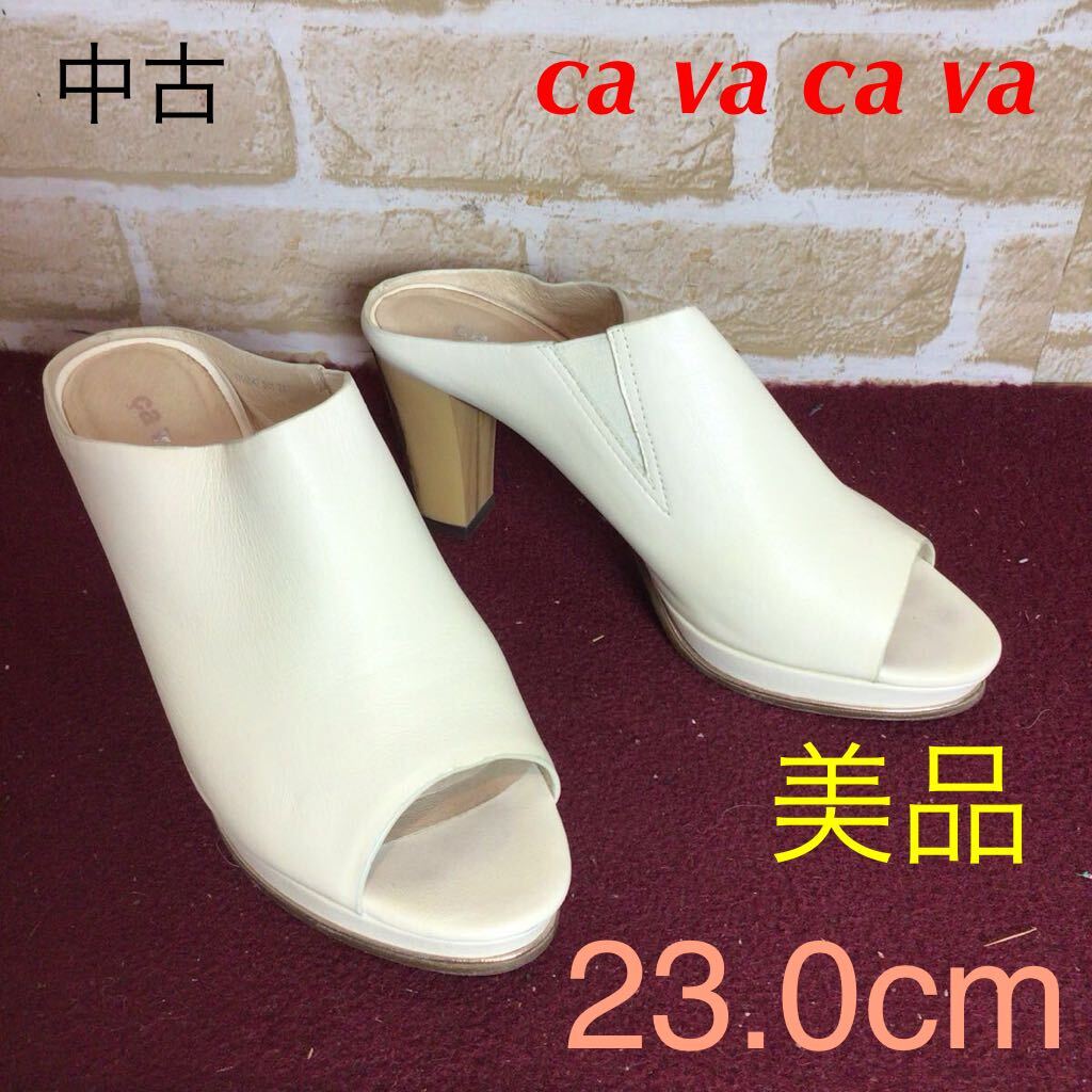 【売り切り!送料無料!】A-238 cava cava!サンダル!23.0cm!白!オフホワイト!ハイヒール! 太めヒール!歩きやすい!中古!美品