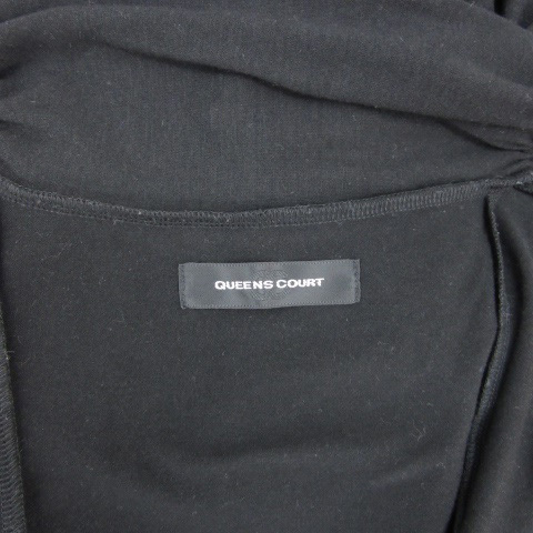 クイーンズコート QUEENS COURT カーディガン ミドル丈 七分袖 ショールカラー 前開き 2 ブラック 黒 /YM11 ■MO レディース