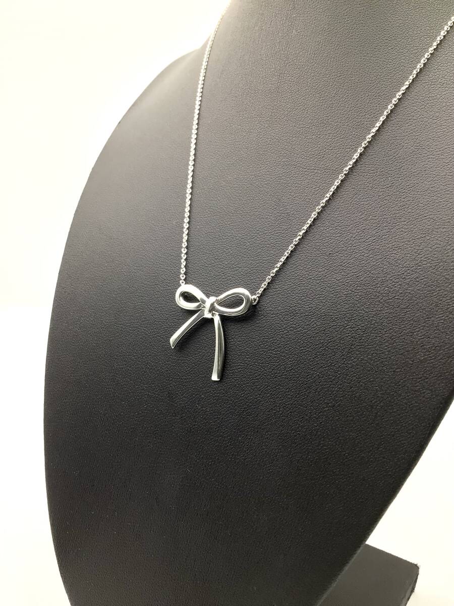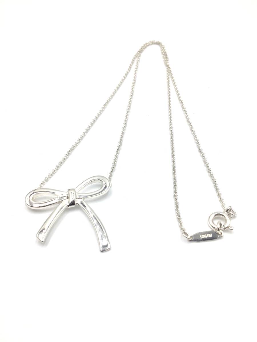 ご覧頂き有難う御座います。 トラブル防止の為、ご入札の前に必ず説明文等最後までお読みになりご理解の上入札宜しくお願い致します。 気持良く使って頂け為に、超音波洗浄・クリーニング・ 磨き・3DUV紫外線消毒99.9除菌をおこなっております。 アフターケアー用、クロス拭き1枚付(約7.5×7.5㎝)プレゼント 商品真贋鑑定済みでございますのでご安心してご購入下さい。 【ブランド】 TIFFANY&Co. ティファニー 【商品名】 ボウ リボンモチーフ SV925 シルバーネックレス 【カラー】 シルバー 【サイズ】 首回り約40㎝ トップ大きさ横約2.2㎝x縦最大約2.1㎝ 【重量】 約2.9g 【付属品】 なし 【管理番号】 31697 【商品状態】 :A 薄スレはありますが、まだまだ活躍していただける商品です。 N:新品/未使用品 S:新品同様綺麗な商品 SA:新品同様に近い美中古商品 A:薄傷、汚れが少ない、全体的に状態の良い商品 AB:多少の傷、汚れがみられる中古商品 B:傷汚れがみられる中古商品 BC:傷汚れが多くみられる中古商品 C:かなり傷汚れが多くみられる中古商品 E:難有/ジャンク扱い ◎お休みなども御座いますので、即発送希望の方は 自己紹介欄に記載いたしておりますので必ず御覧確認下さい。 | ||