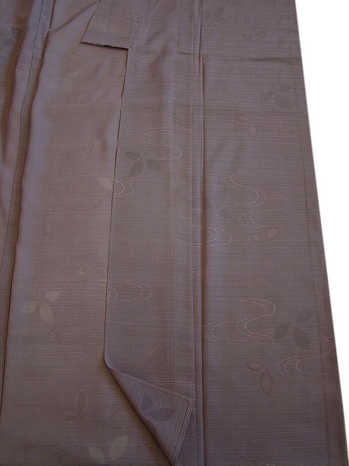 | 商品説明 | こちらのお品は夏物でございますので、7月~8月にお召頂ければと思います。 「絽」と言えば、紗と双璧を成す夏のお着物の生地で その最大の魅力は絶妙の透かし加減でございます。 清涼感溢れる地の風を通すしなやかさは夏に着物を着るという贅沢を 快適に愉しませてくれることでしょう。 着物には、大きく分けて「袷(あわせ)の着物」と「単衣(ひとえ)の着物」と「夏着物」があります。 反物(表地)を着物に仕立てるときに、裏地類をつけるものを袷の着物、 つけないものを単衣の着物と呼び、胴裏や八掛といった裏地がつかない一枚ものの着物です。 また裏地がないため、座る時などにヒップのラインが目立たないよう、 居敷当て(いしきあて)の生地をつけることもあります。 居敷当ては付いておりません。 とてもしなやかなさらっとした肌触りが極上の着心地を誘う滑らかな「駒絽」の生地は 渋い紫鳶色地に流水、木の葉柄が洒落感溢れる着物姿を演出しております。 |