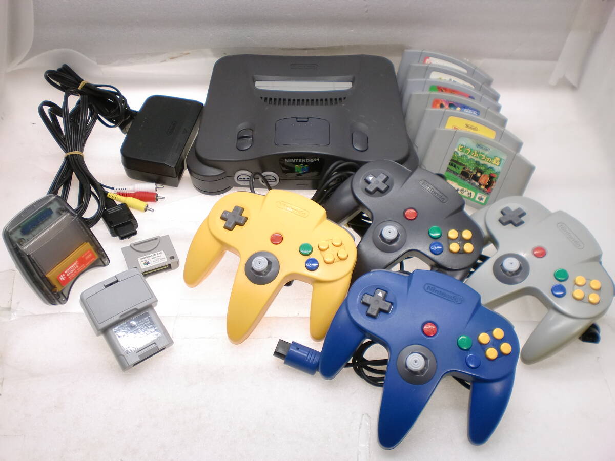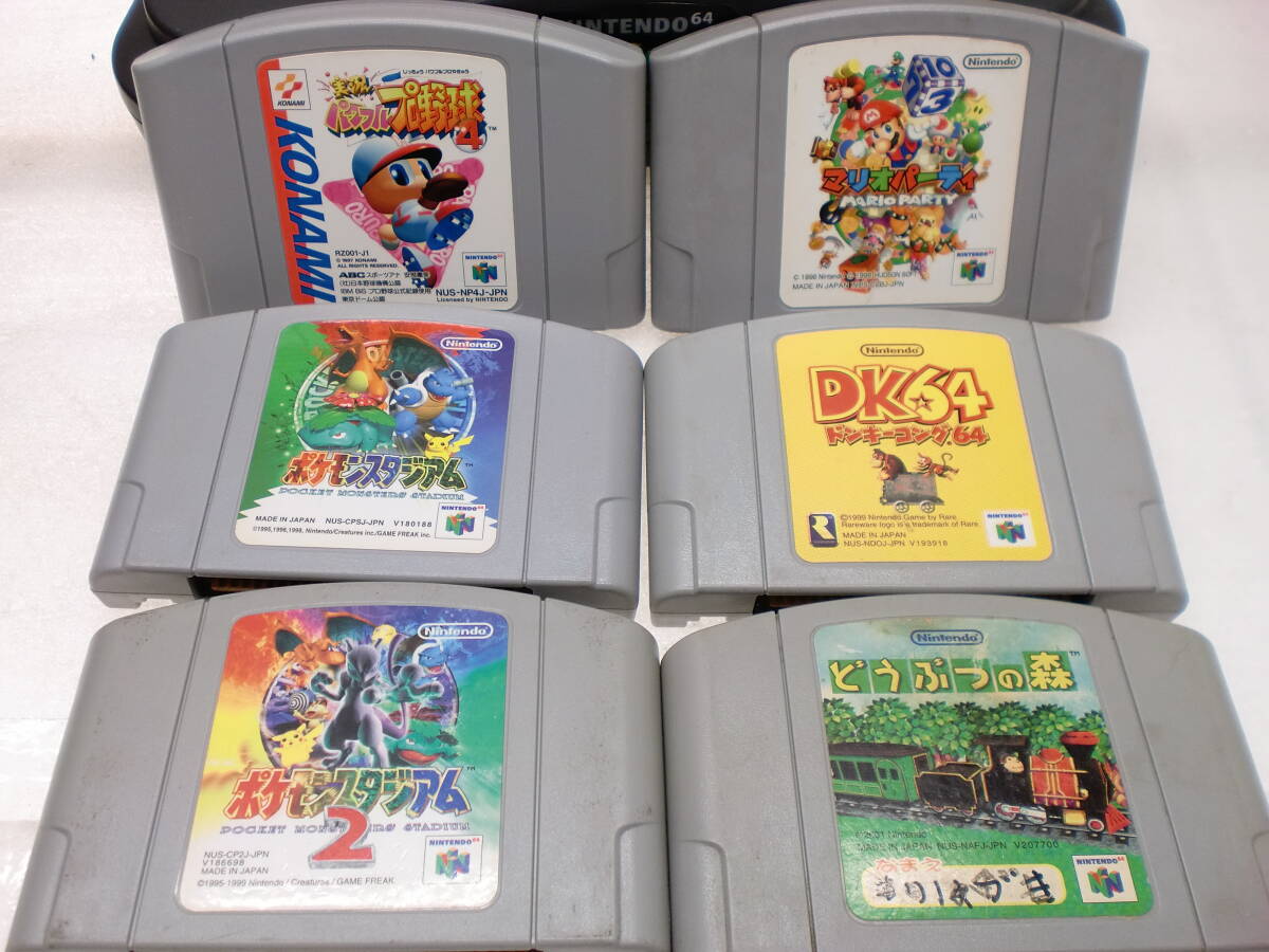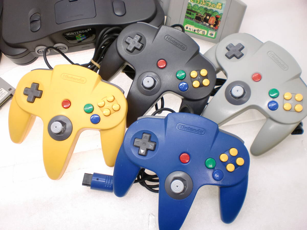 2406051 ニンテンドー64本体 マリオパーティ どうぶつの森 ポケモンスタジアム他 コントローラー4個 現状品