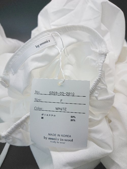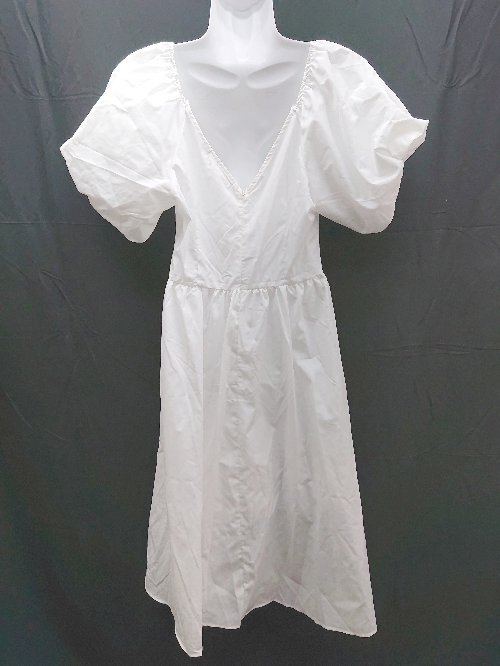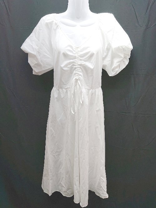 ◇ 新品 by muni:r パフ袖 フロントシャーリング ノンストレッチ 半袖 ロング ワンピース サイズF ホワイト レディース E