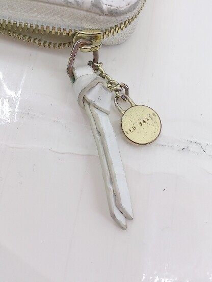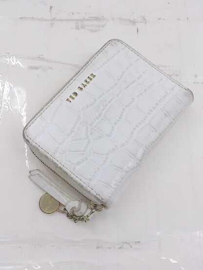 ◇ Ted Baker テッドベーカー ラウンドファスナー ウロコ型押し ミニ財布 ウォレット ホワイト系 レディース E