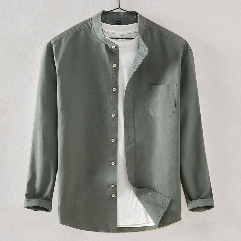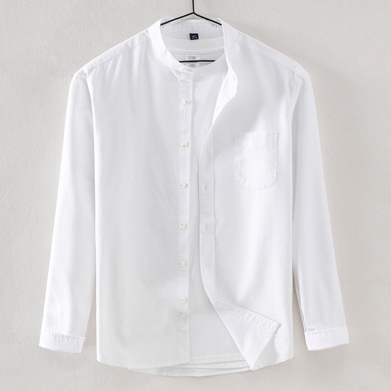 綿 メンズ 立ち襟 長袖シャツ オックスフォード ワイシャツ トップス 無地 ビジネス おしゃれ 春夏 シーブルー M~4XL
