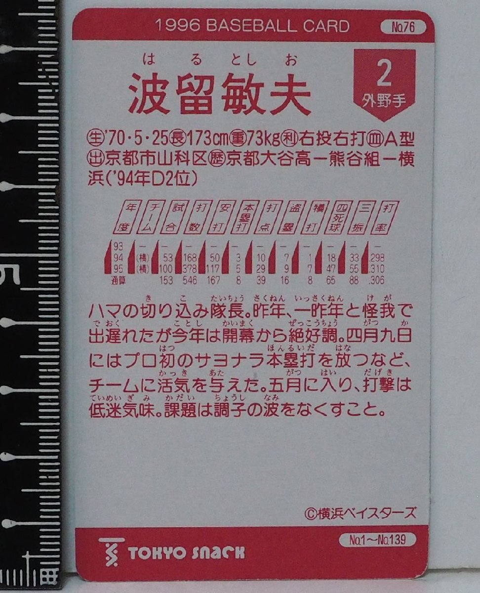 96年カルビー東京スナック プロ野球カードNo.76 レアブロック【波留 敏夫 外野手 横浜ベイスターズ】平成8年1996年 当時物Calbeeおまけ食玩