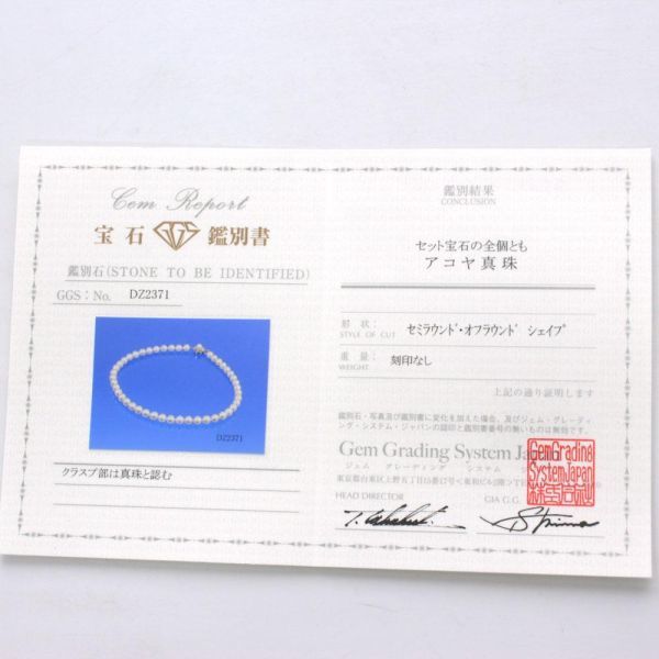 【鑑別書付】 アコヤ パール 8mm ストレート ネックレス あこや 真珠 6月誕生石