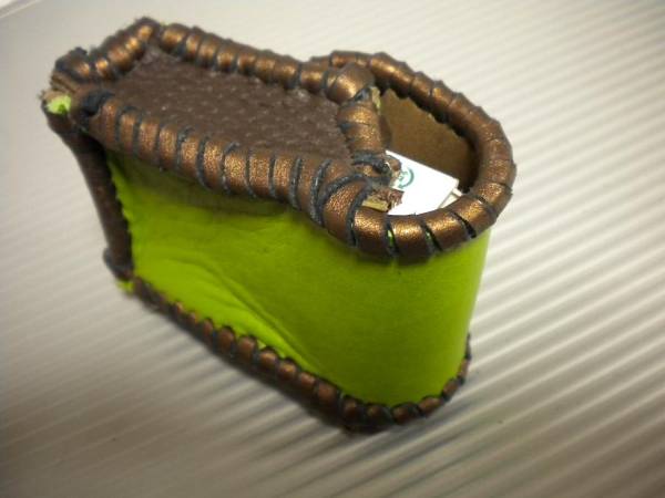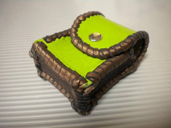 表面の正面側と蓋から後ろ側は、グリーンレザーを使用しています。