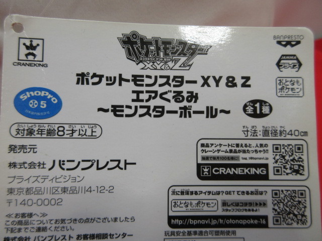 8OH5767 特大 ポケットモンスター ポケモン エアぬいぐるみ Φ40cm ポッチャマ/モンスターボール2個