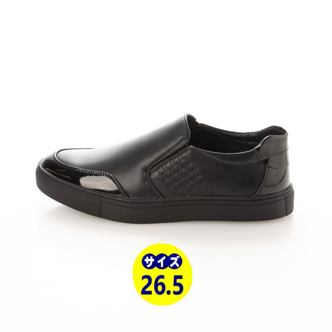 新品、訳あり商品、送料無料!『21109-BLK-265』 男女兼用・スムース&エナメル2トーンデッキシューズ・スニーカー |