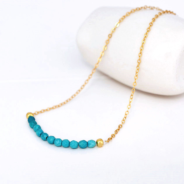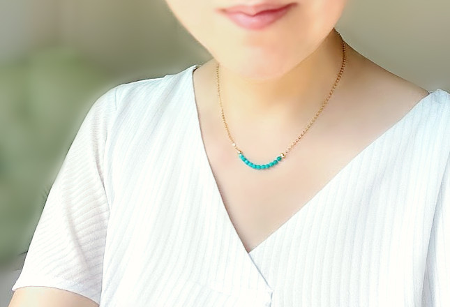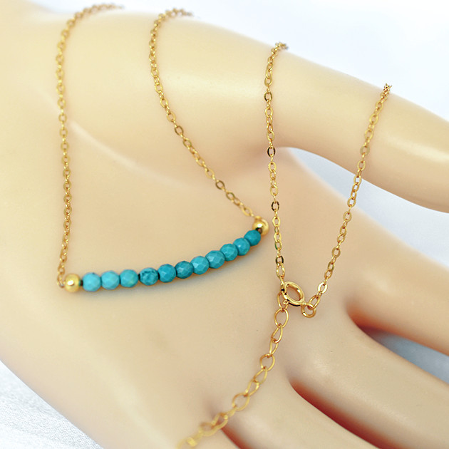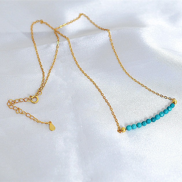 ●金属の素材:シルバー925(刻印有り), 18Kゴールドコーティング 。●ストーン素材:ターコイズ(トルコ石)、ラウンドカット、直径約3mm。●サイズ:長さ約41cm 、アジャスター約5cm 、全長約46cm。太さ約0.7mm。アズキチェーン。
