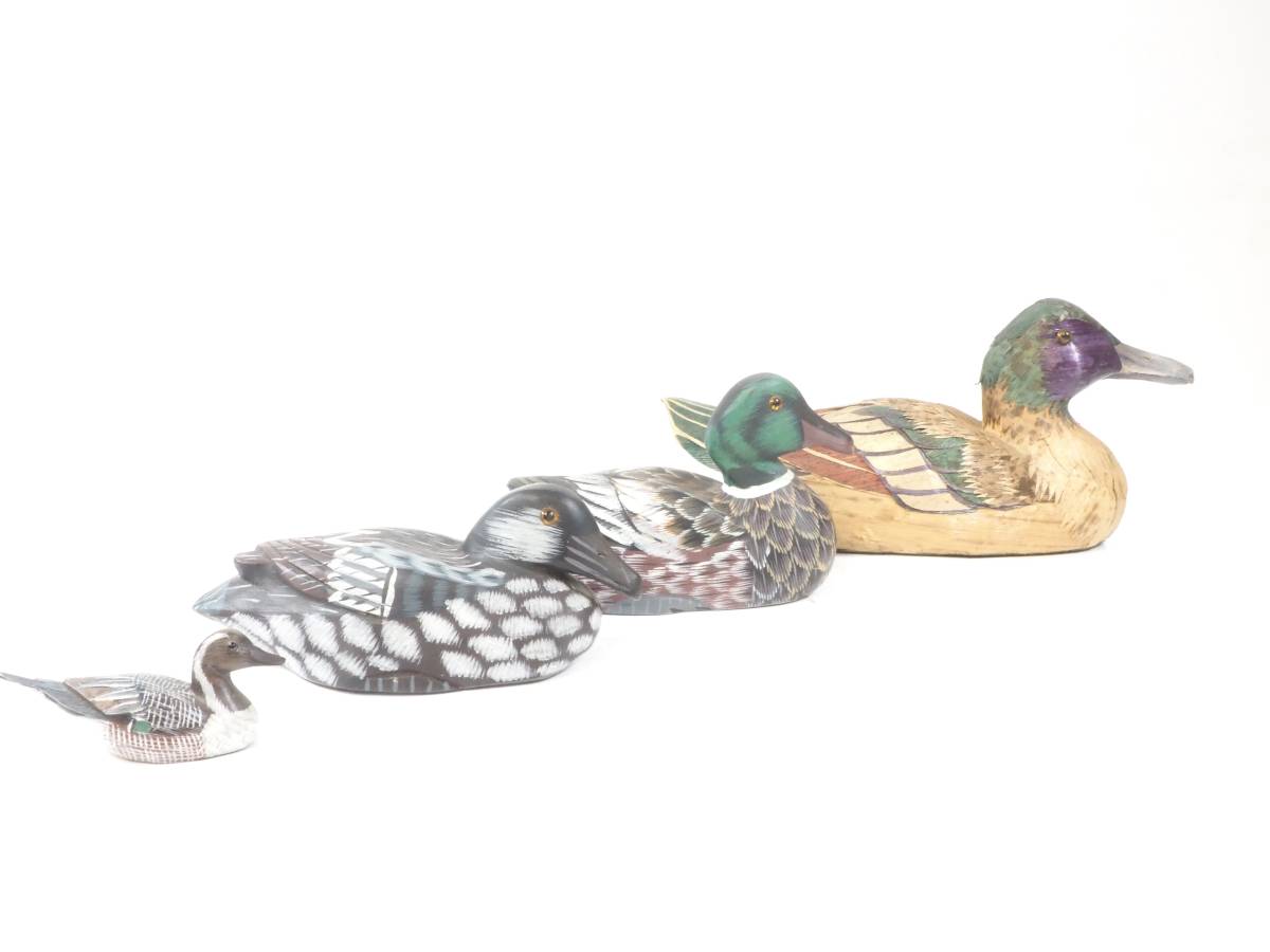 中国古玩 木製 鴨の置物4個セット ハンドペイント 民芸品