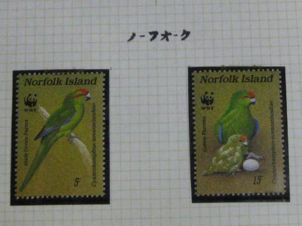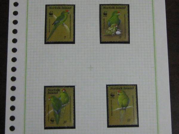 N №15 ノーフォークイスランド オウム 切手 4種完 未使用 NH