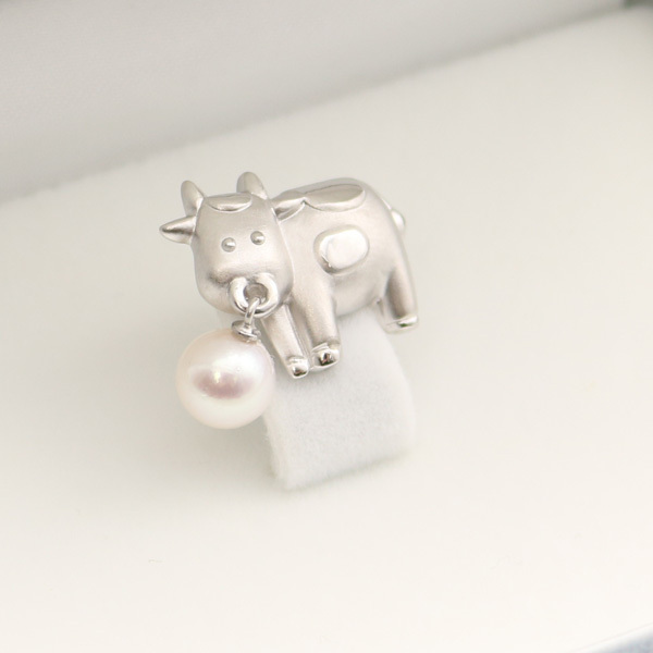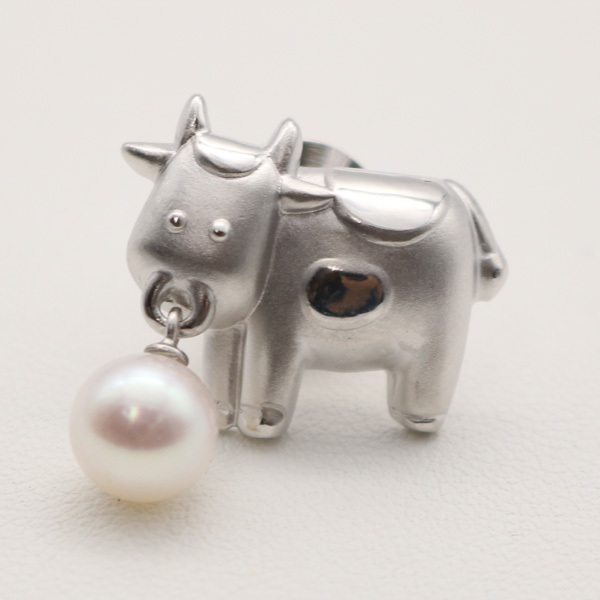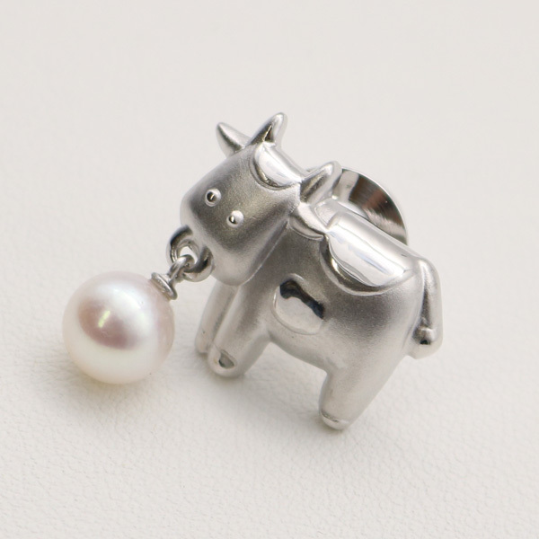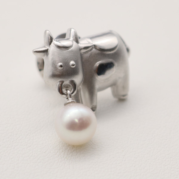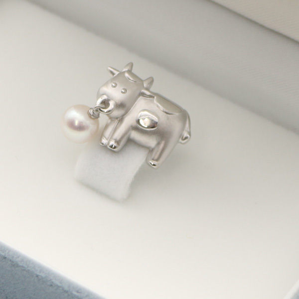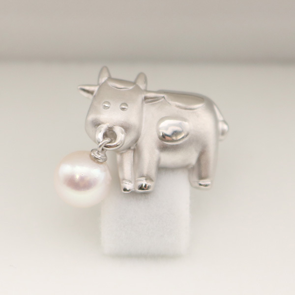 あこや真珠7.0-7.5mmパールを使った動物シリーズウシタイタックです。 |