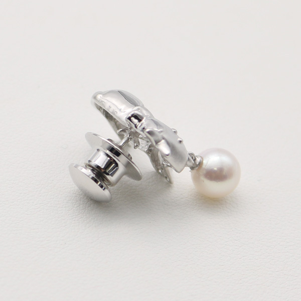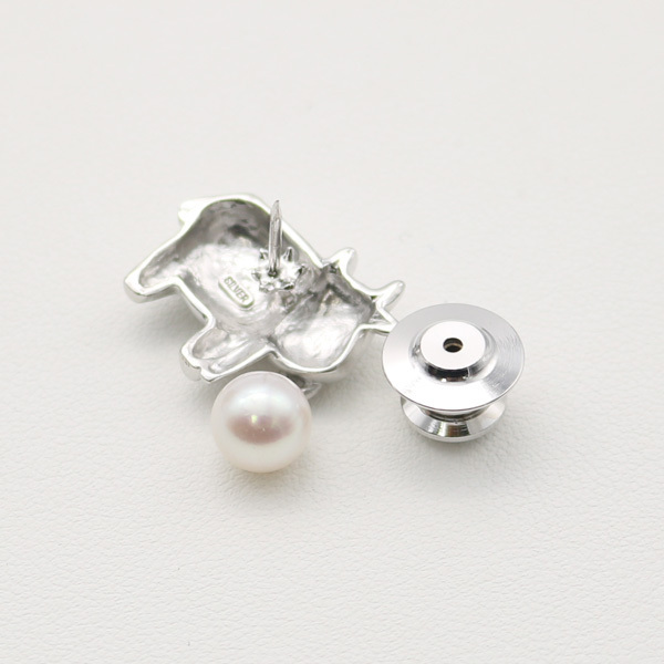 真珠 パール ブローチ タイタック あこや真珠 7mm-7.5mm ホワイトカラー アコヤ真珠 ブローチ タイタック 動物シリーズ ウシ シルバー |