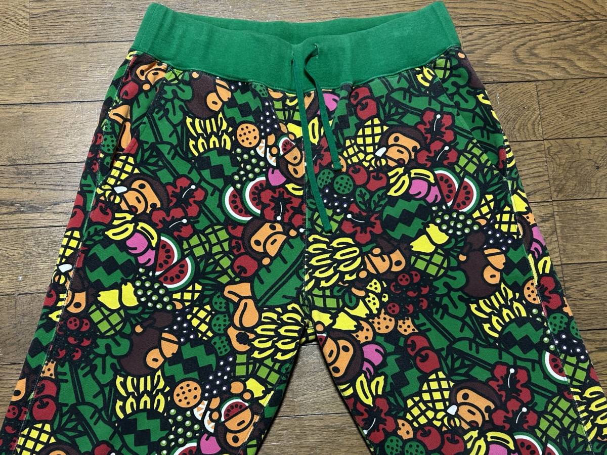※アベイシングエイプ A BATHING APE マイロ トロピカル総柄 スウェットパンツ グリーン M         BJBC.I
