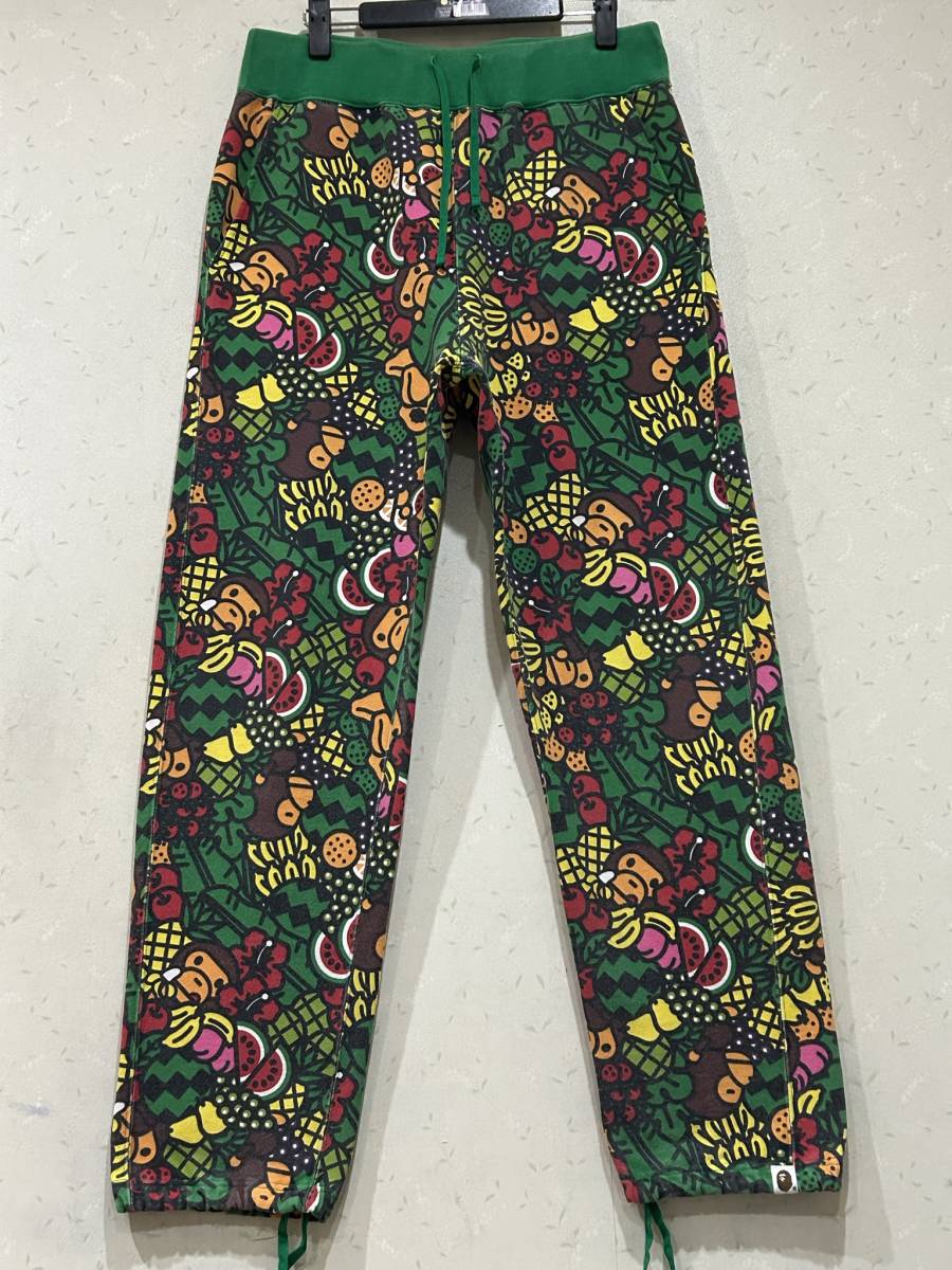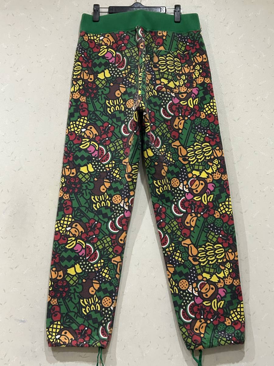 アベイシングエイプ A BATHING APE  マイロ  トロピカル総柄 スウェットパンツ グリーン  M                   BJBC.I
