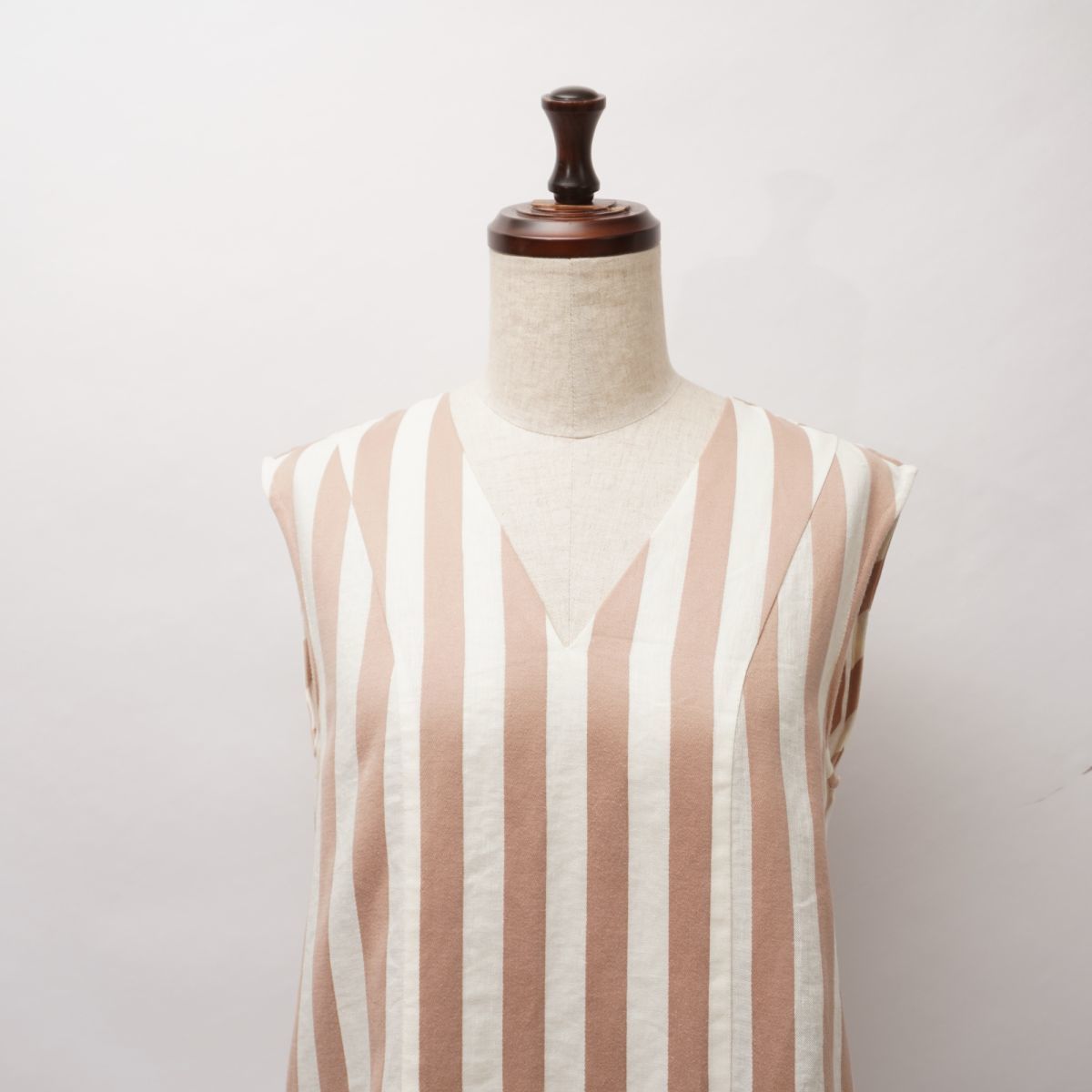Paul Smith ポール・スミス ストライプ Vネック ノースリーブジャンパースカート レディース 白 ベージュ サイズ38*HC243