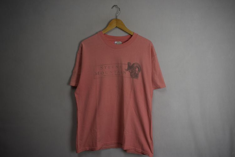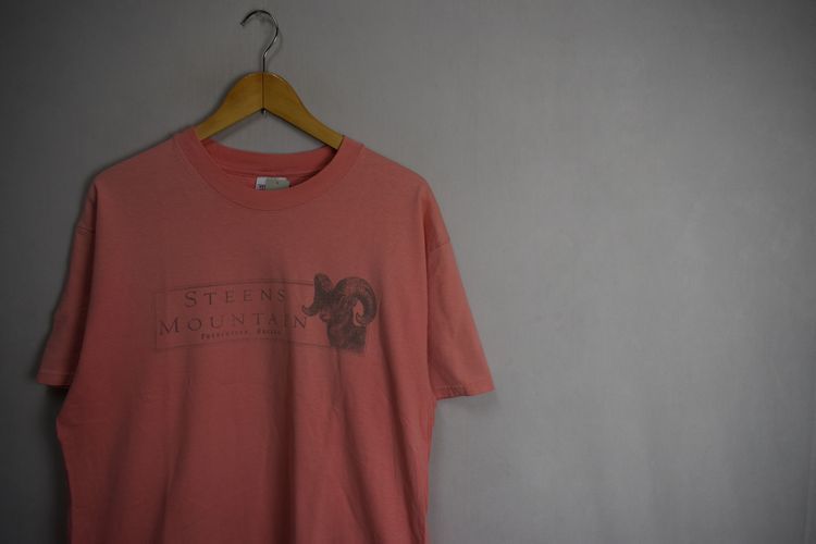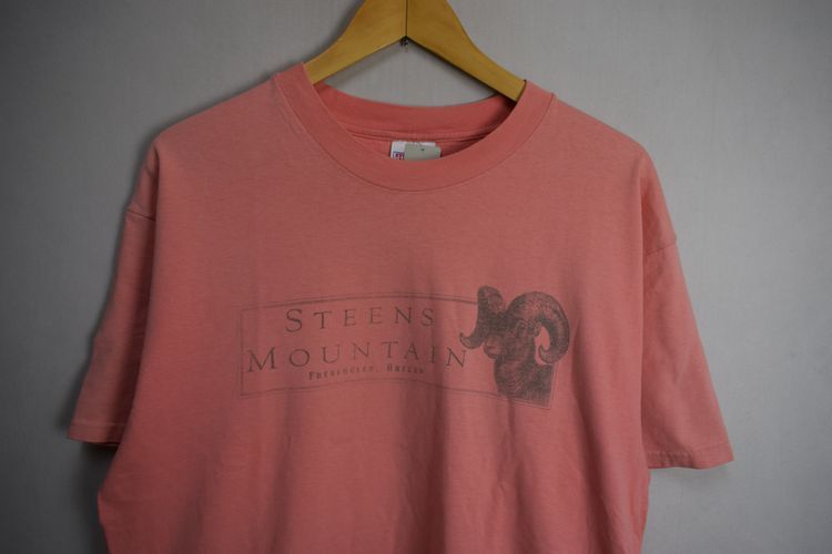 グッドプリント◎90sビンテージHANESヘインズオールコットン半袖クルーネックプリントTシャツLサーモンピンクアメカジ nr24015