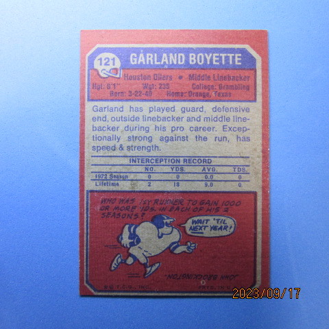 1973 Topps Football #121 Garland Boyette