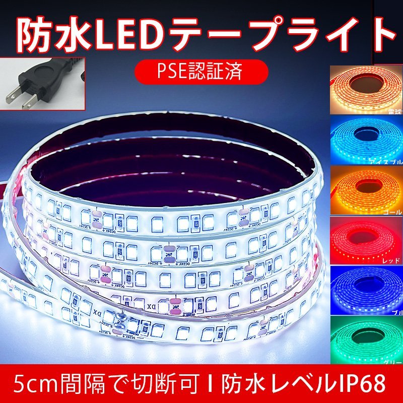 ※※テープはIP68の防水加工しておりますが、テープとコンセントの接続部分は水中に使用しないでください。