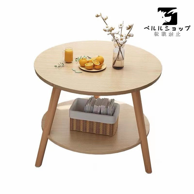コーヒーテーブル ローテーブル 北欧 ちゃぶ台 座卓 無垢材 円形の低いテーブル 棚付き ダイニングテーブル 幅60CM ナチュラル