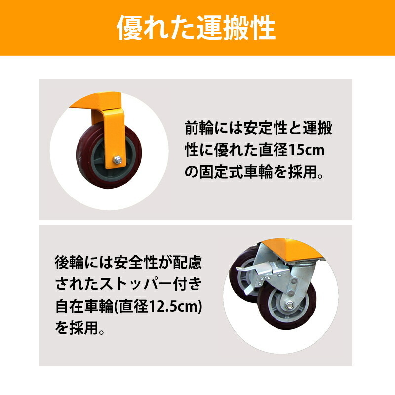 ・自在車輪径:12.5cm、固定車輪径:15cm