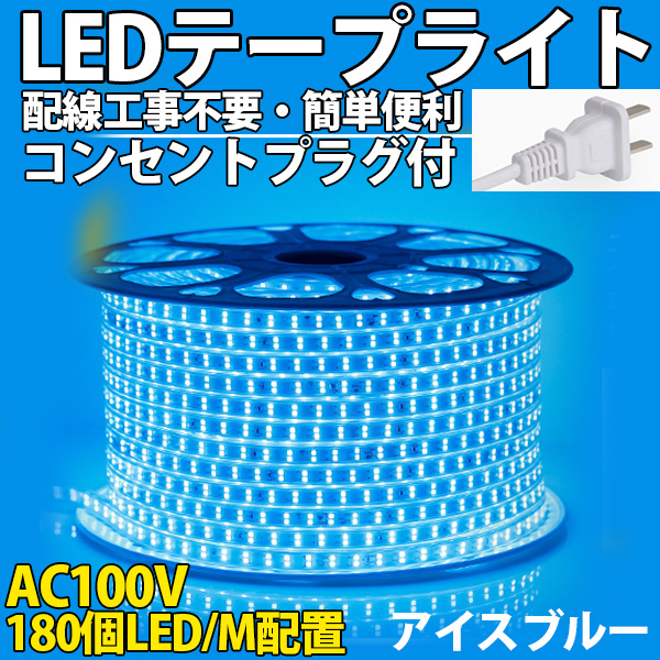 送料無料 LEDテープライト コンセントプラグ付き 家庭用 AC100V 5M 900SMD/5M 配線工事不要 簡単便利 アイスブルー 間接照明 棚照明 二列式