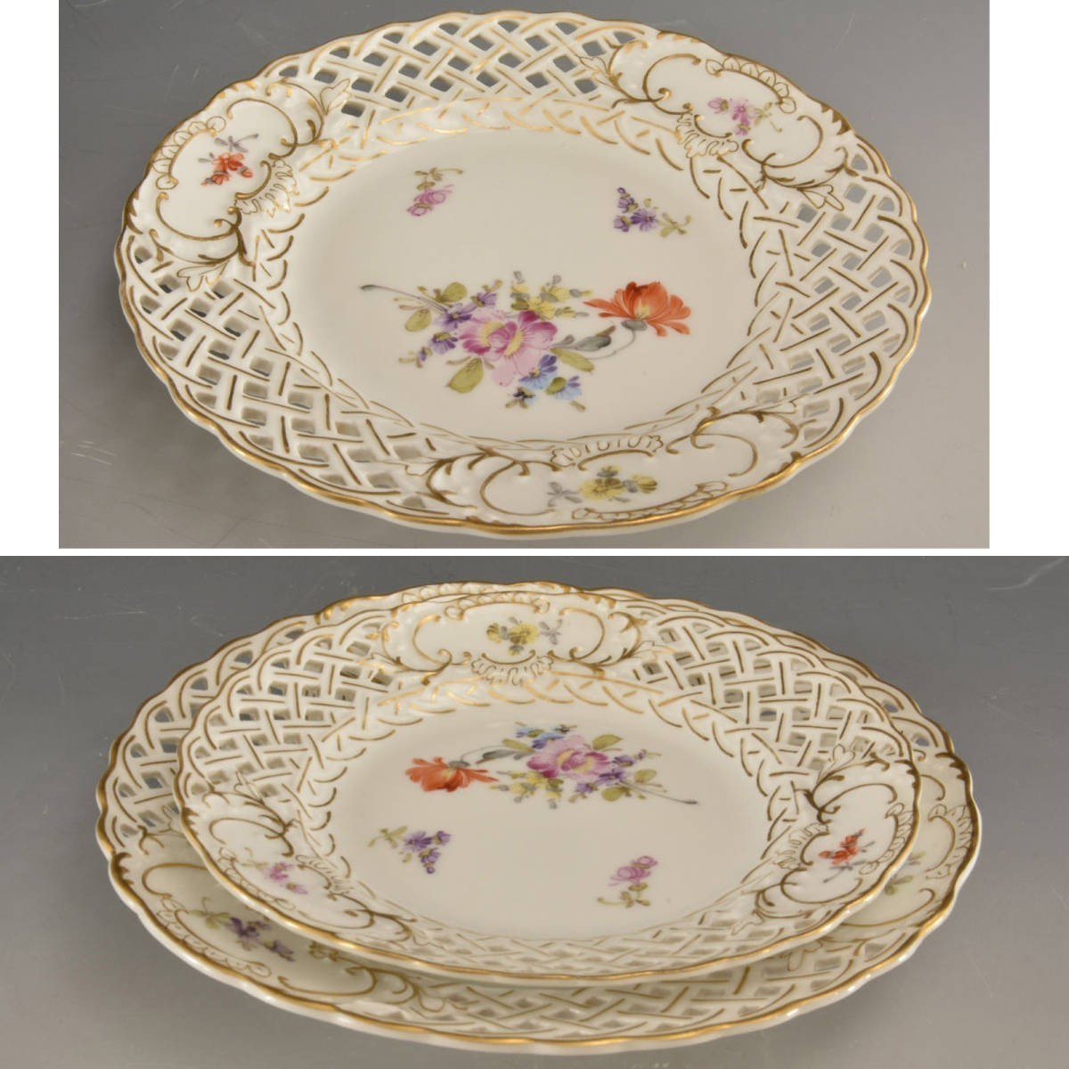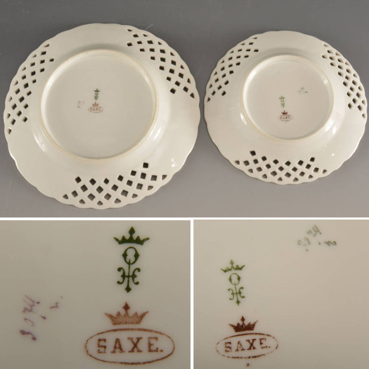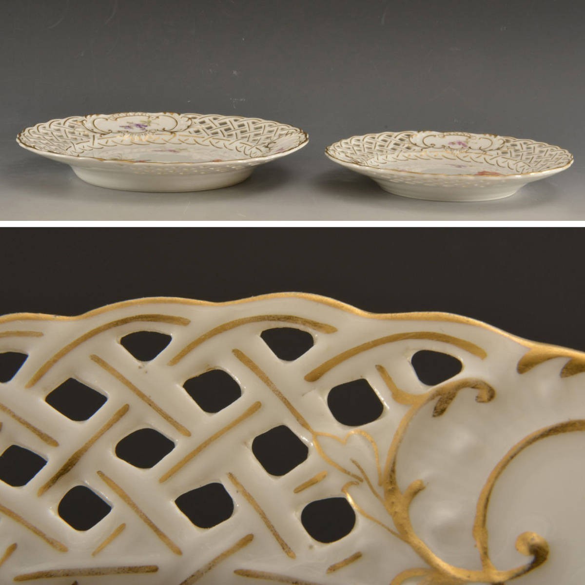 状態:(大)の底縁にチップあり。(小)の透かし部分に焼成前からの小さいひび1ヶ所あり。他、良好。各底に窯印等などあり。サイズは(大)をご参照下さい。箱無し。