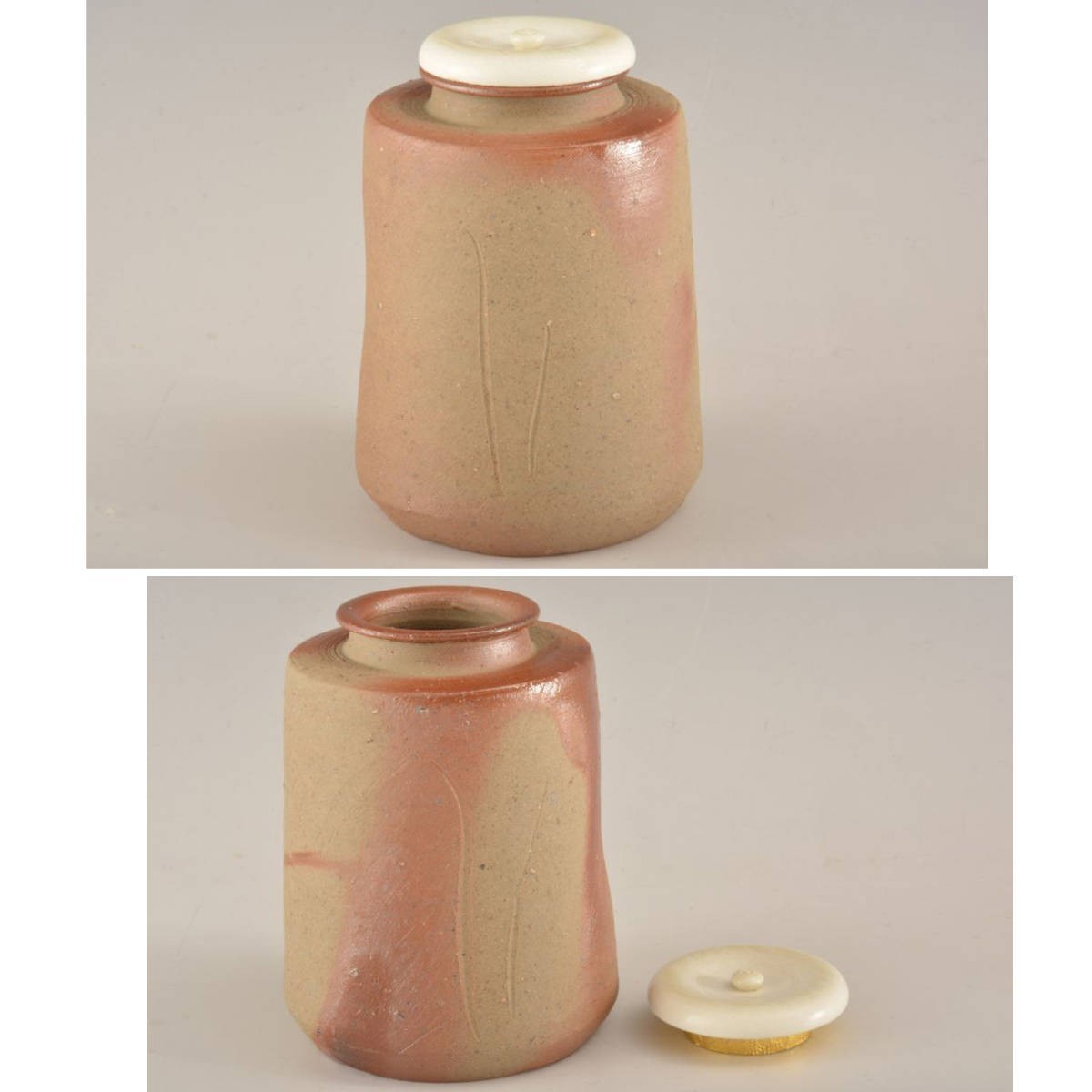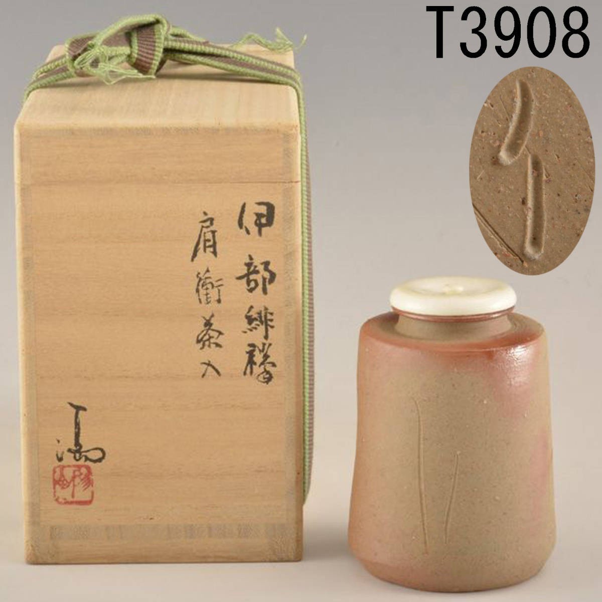 T03908 伊勢崎満 伊部緋襷肩付茶入:真作