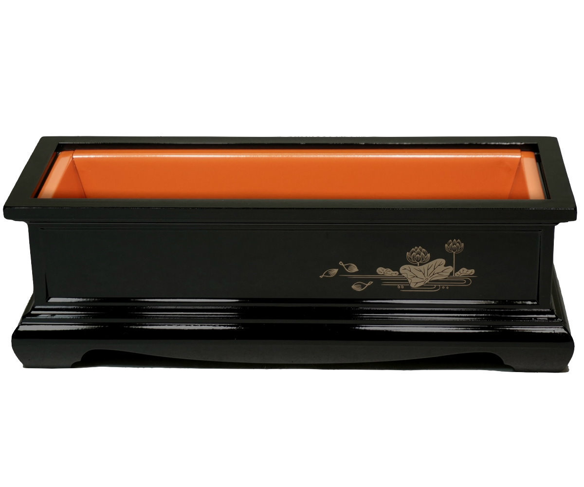 【  長香炉 黒色 蓮柄 8.0寸 】