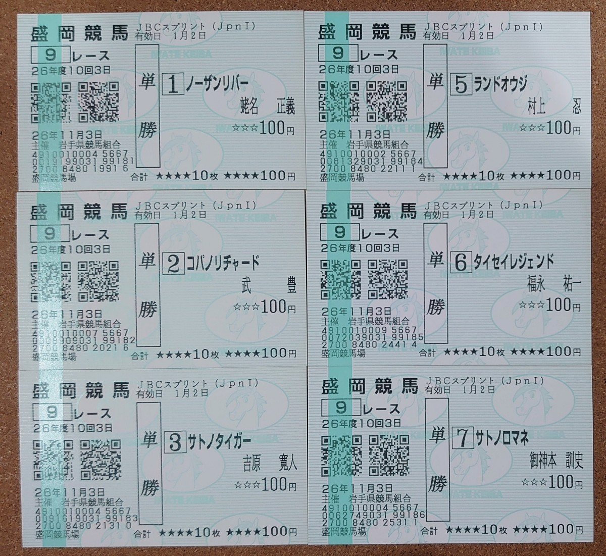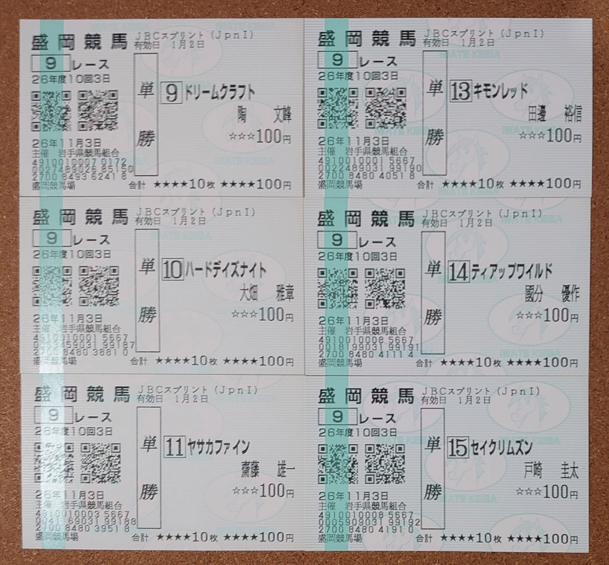 2014JBCスプリント:現地単勝馬券12枚セット
