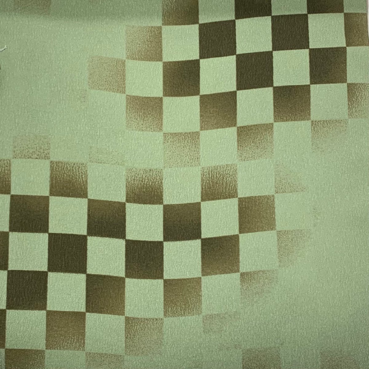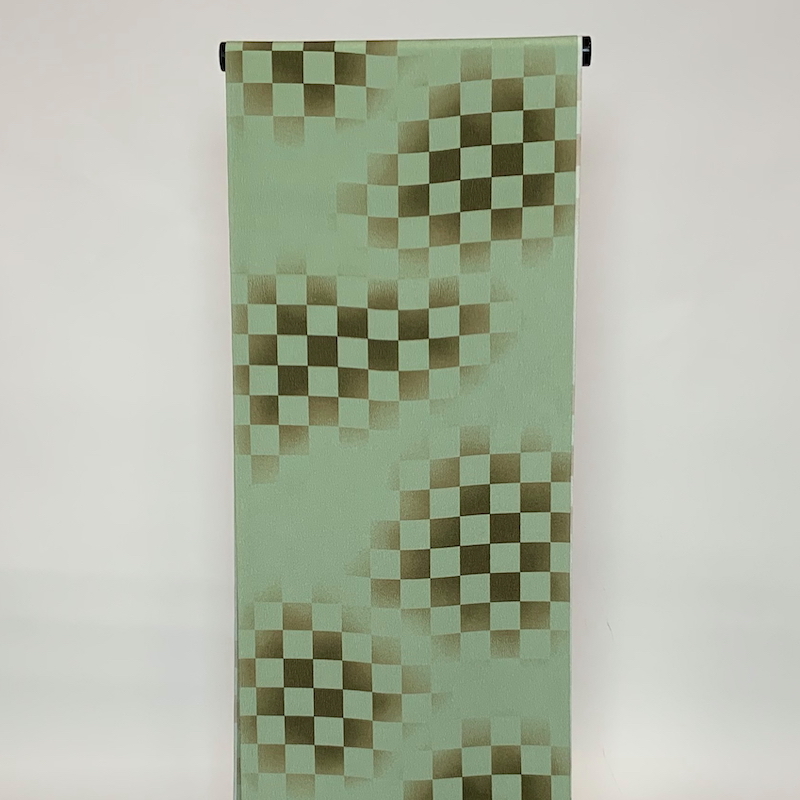 若草色の濃淡だけで市松柄を染め上げています。東レシルックの絹のような肌触りをモダンな柄に染め上げてオシャレを楽しまれてください。
