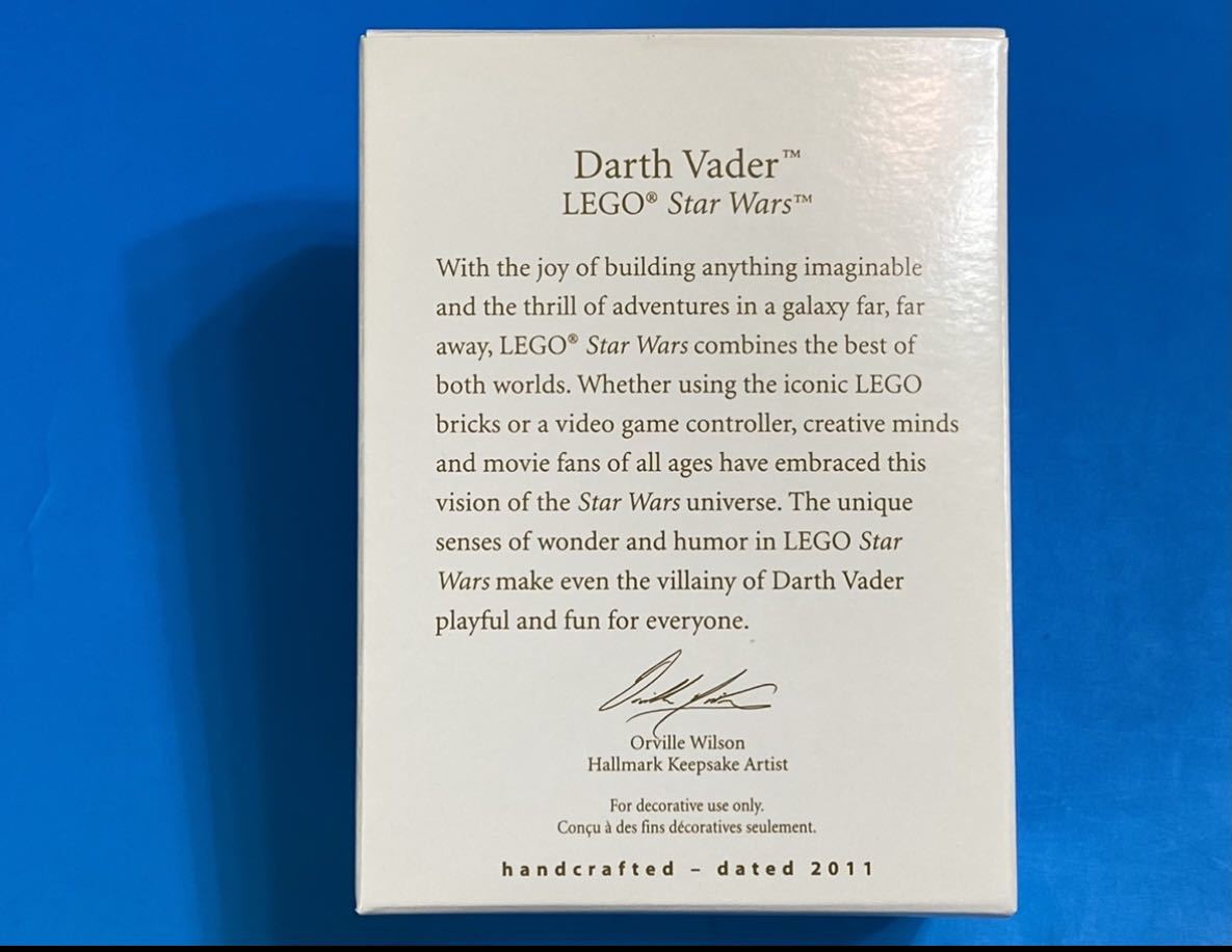 アメリカのホールマーク社のレゴ スターウォーズ ダースヴェイダーのオーナメントです。今から13年前の2011年のみ製造された絶版品です。