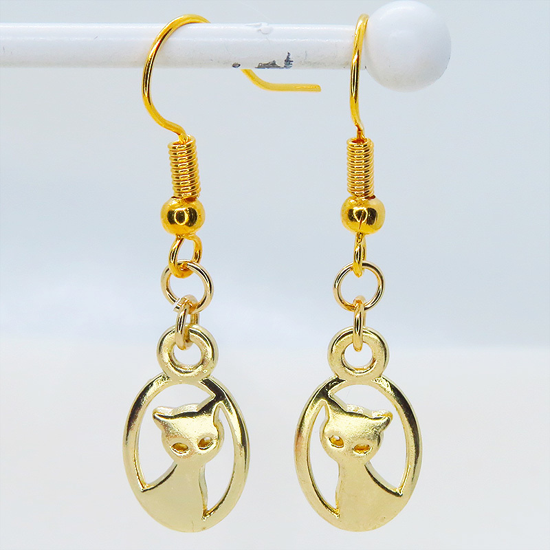 ゴールドカラー 猫シルエットモチーフを使ったコンパクトでシンプルな可愛いピアス サージカル可