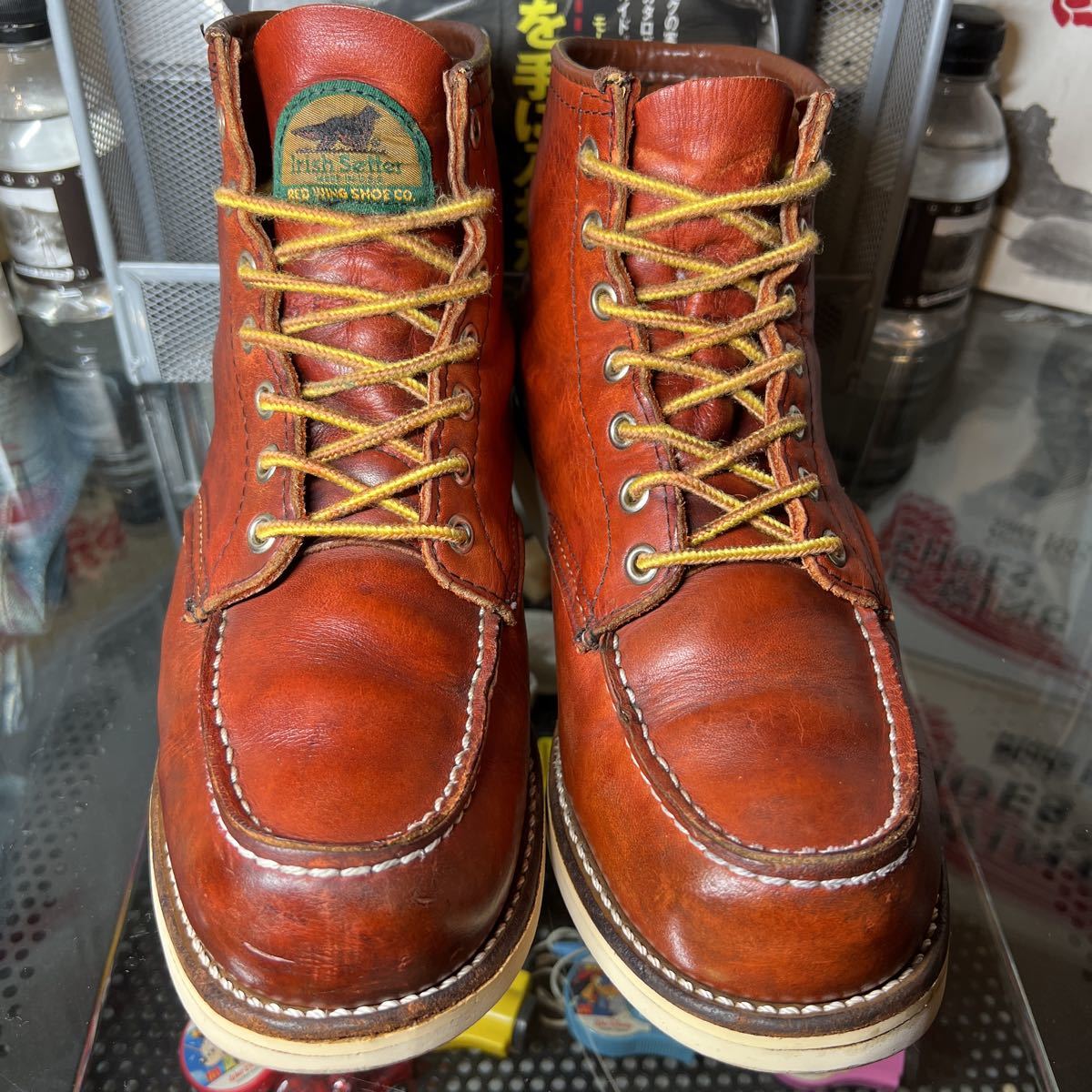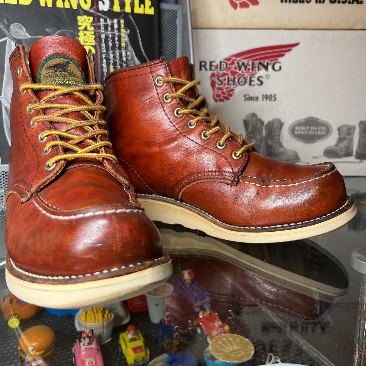 サイド刻印! 1993年製!初期金刺繍 レッドウイング875 7.5E 約26㎝ 半円犬タグ 赤茶オロラセット モックトゥ ヴィンテージ オイルアップ洗浄除菌仕上済!の出品です。