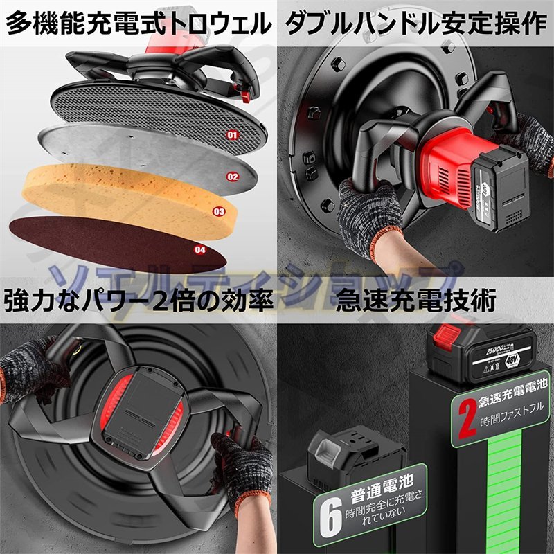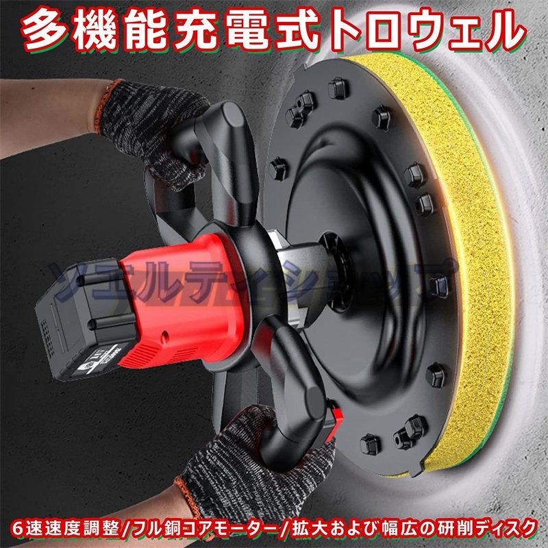 実用品★充電式トロウェル コンクリート研磨機 電動コテ スターラー 6速調整可能 壁面平滑化研磨機 土間施工 ムラ取り コテ仕上げ 不陸調整