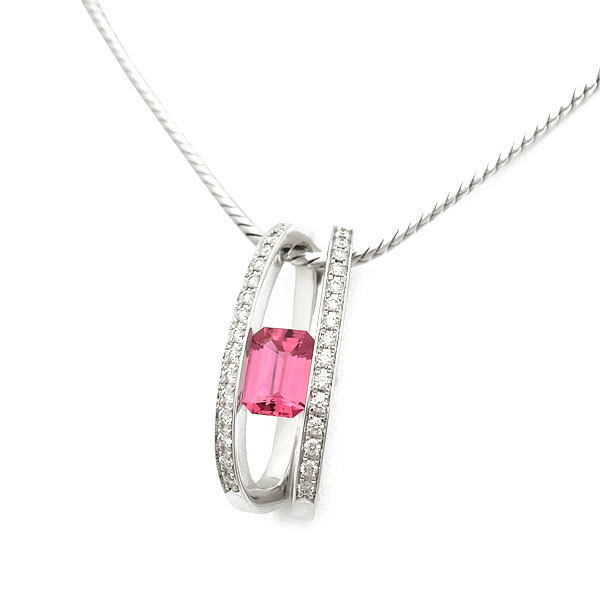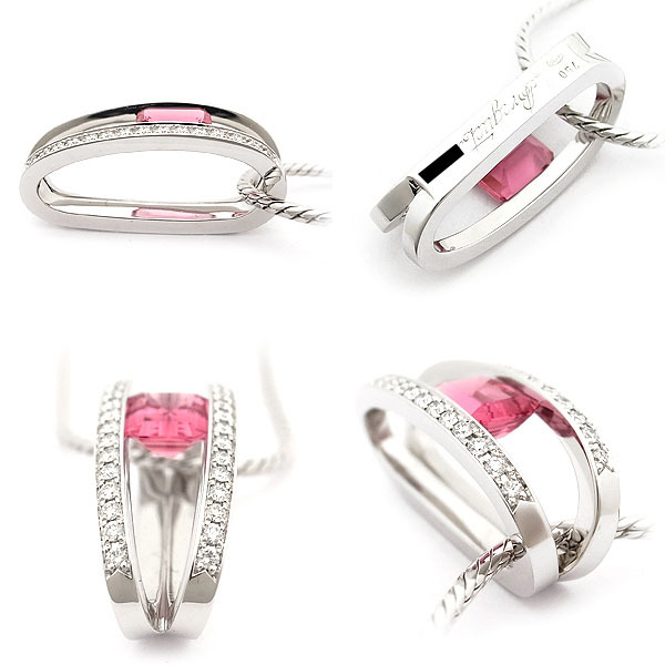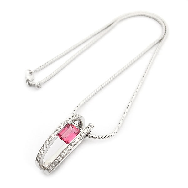【緑屋質屋】ブレゲ ピンクトルマリン・ダイヤ ペンダント ネックレス K18WG【中古】