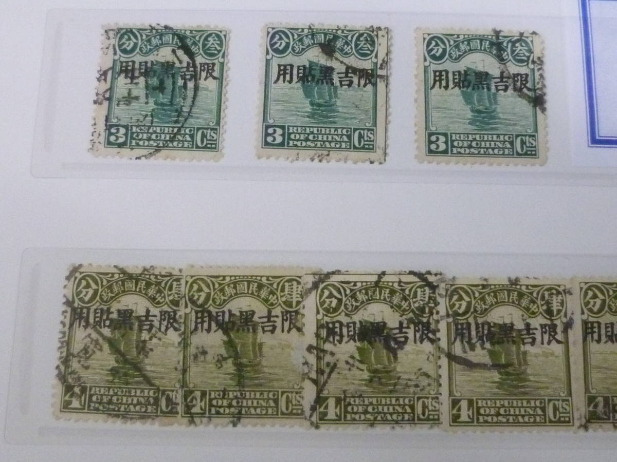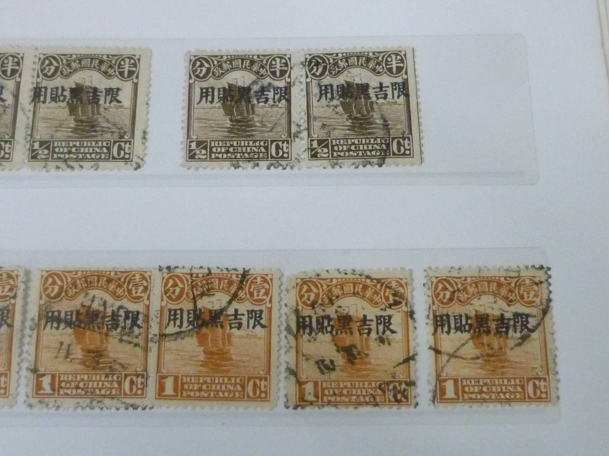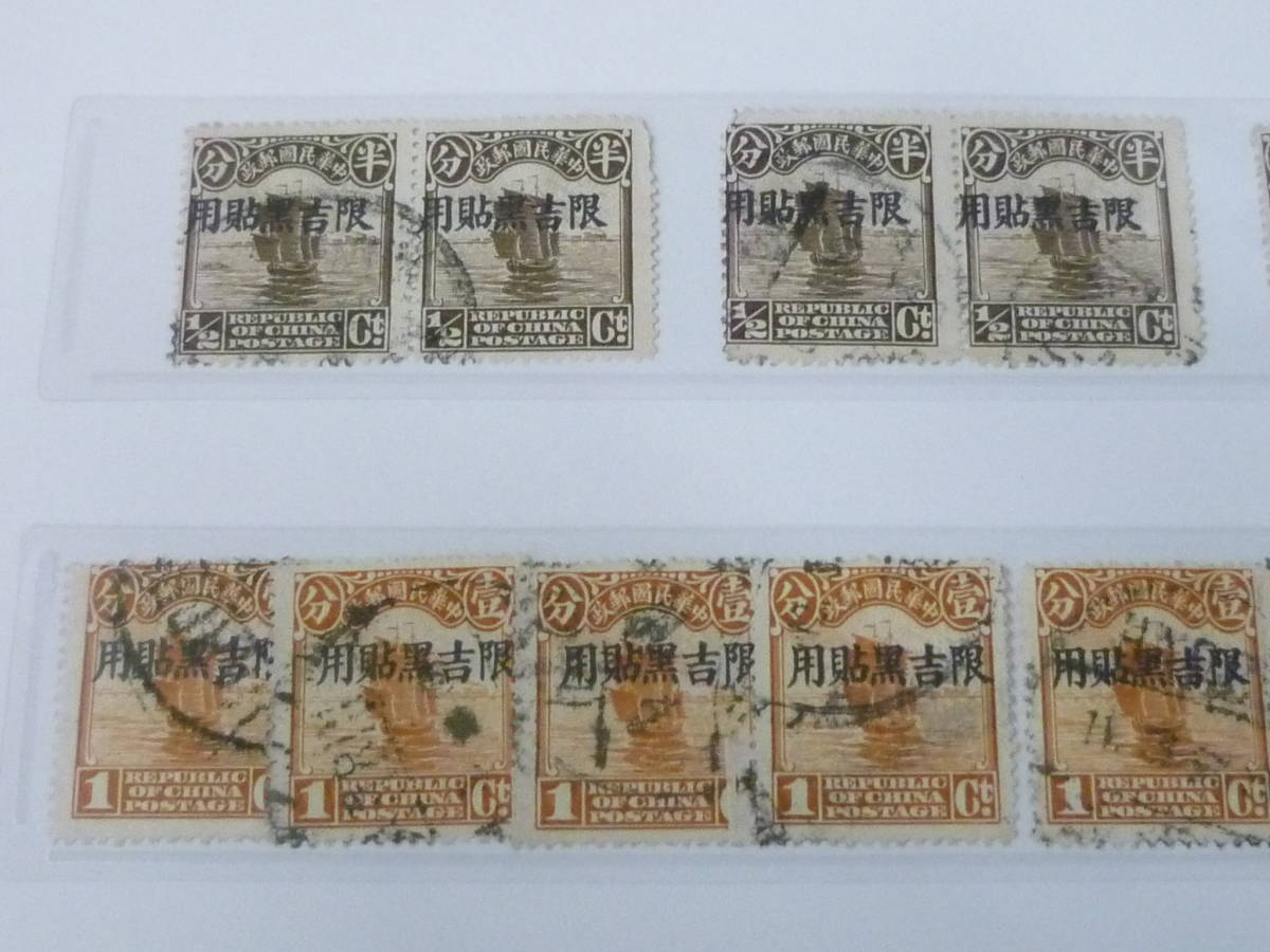 23L A №A 旧中国切手 吉黒省貼用 1927年 北京新版帆船 1/2c~4c 6種 計39枚 使用済・Vf