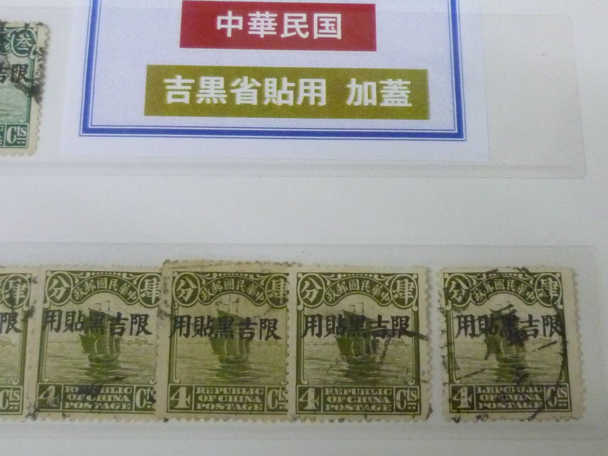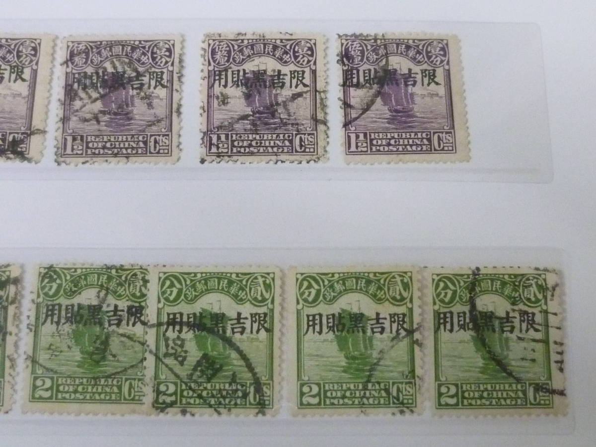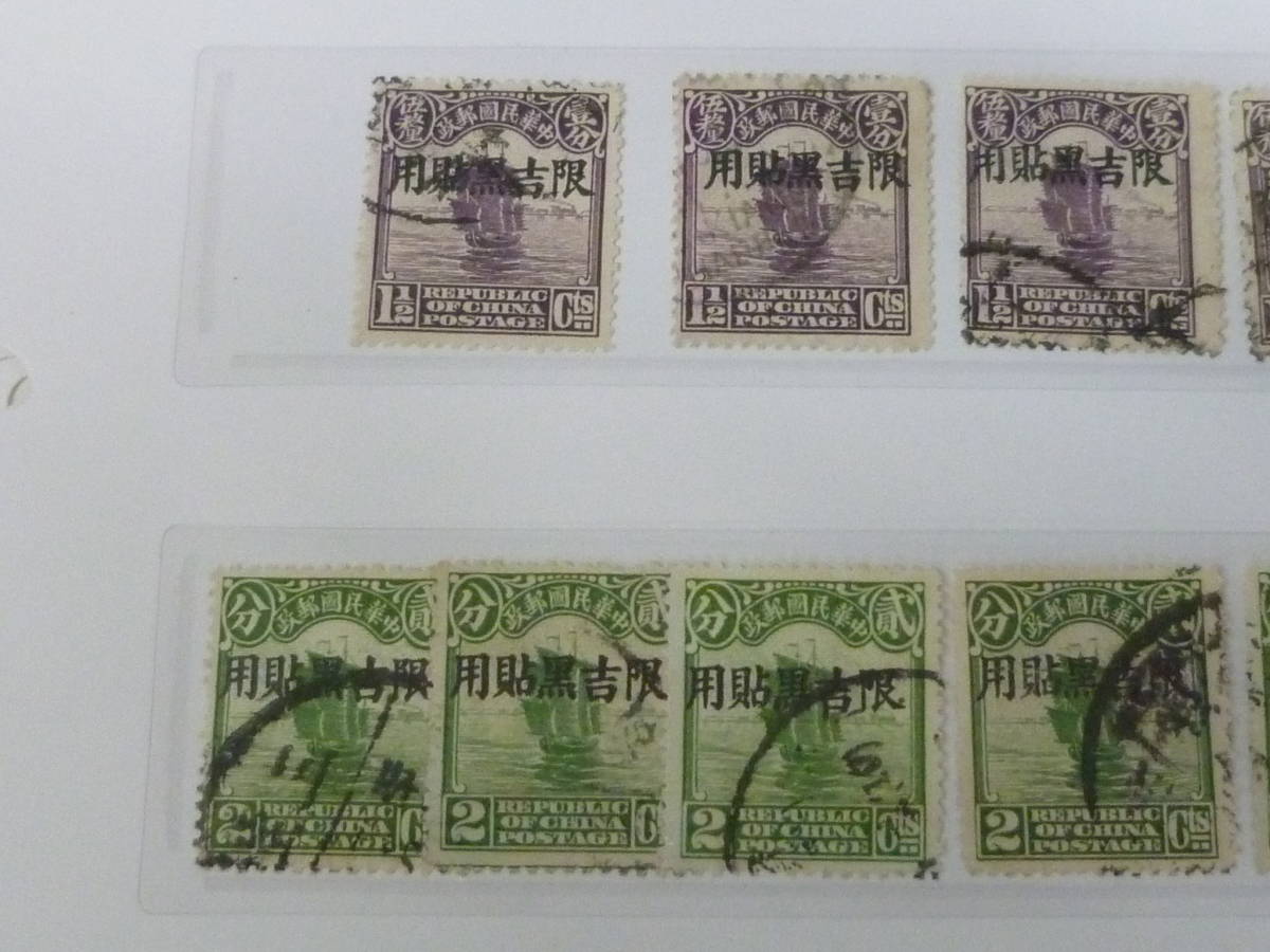 23L A №A 旧中国切手 吉黒省貼用 1927年 北京新版帆船 1/2c~4c 6種 計39枚 使用済・Vf