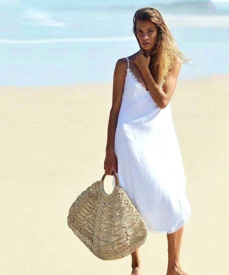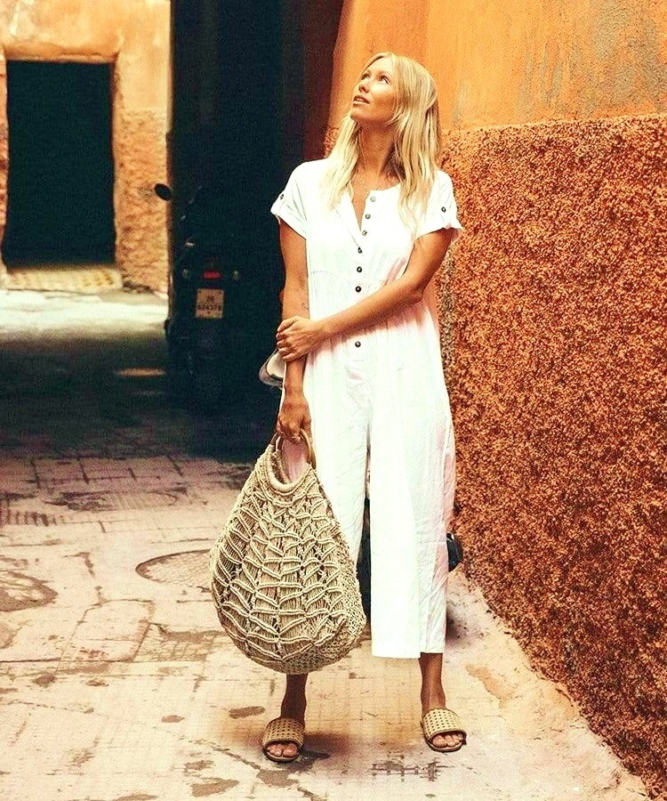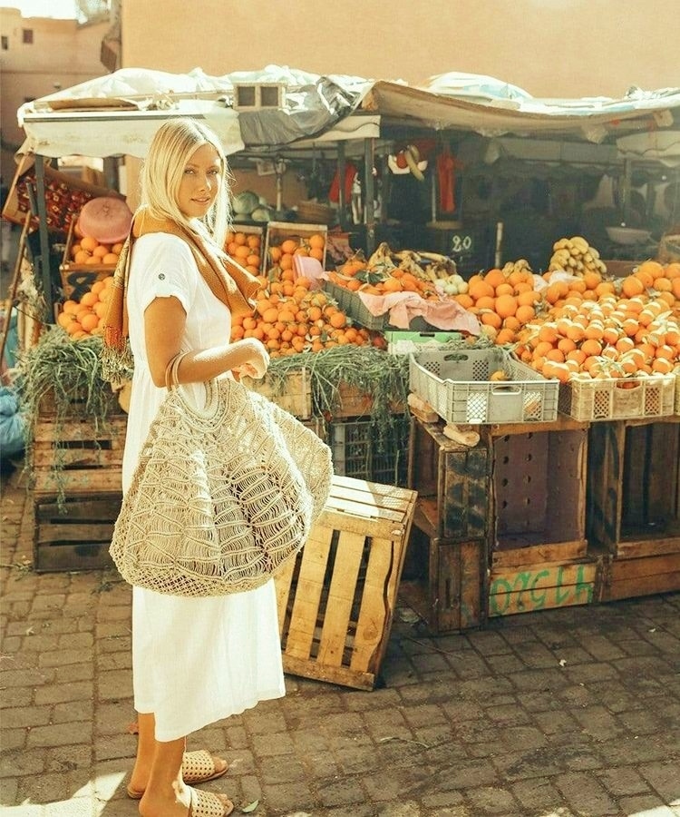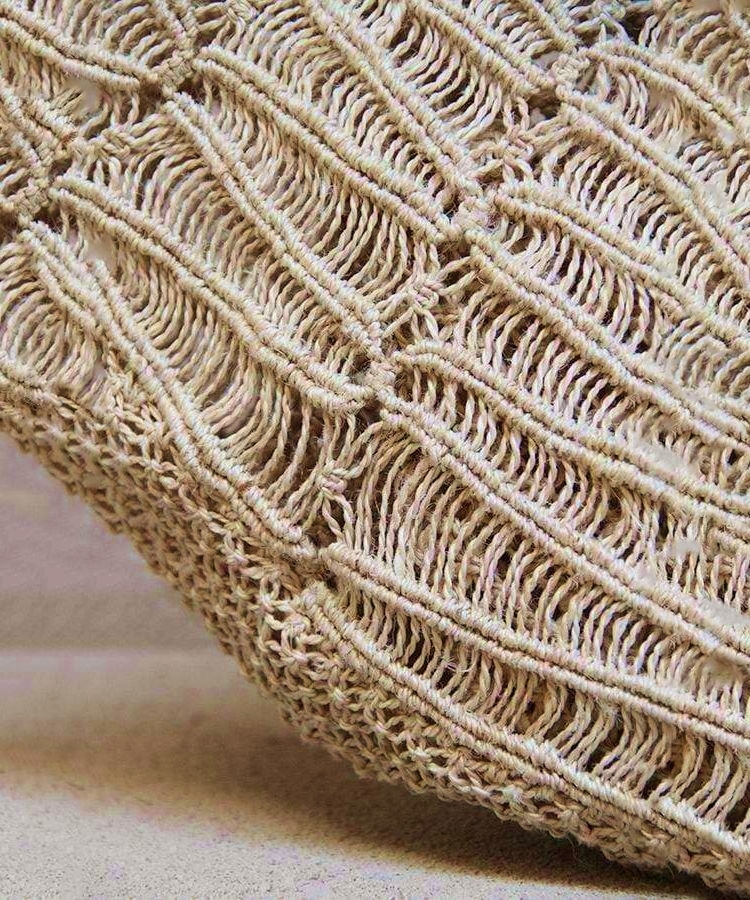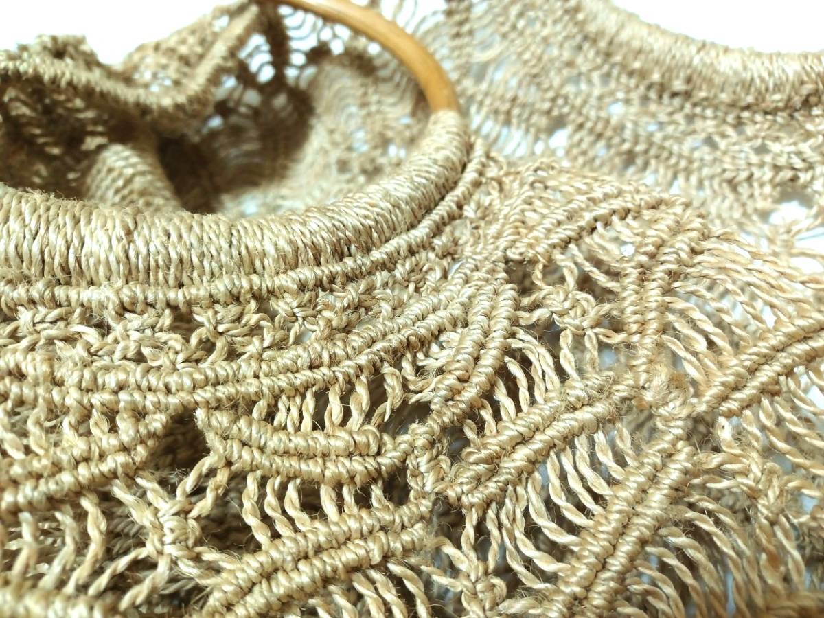 サイトより...手織りの天然ジュートマクラメと竹のリングハンドルを組み合わせた、70年代のビンテージスタイルのバッグ。