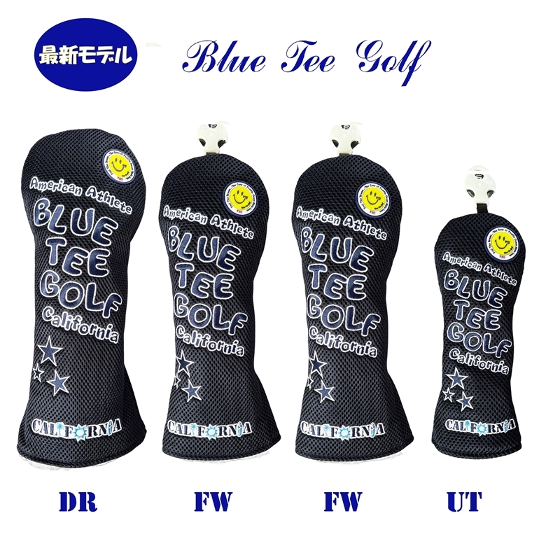 ■オークション【4P:ネイビー】ブルーティーゴルフ【メッシュ スマイル】4本セットカバー BLUE TEE GOLF DHC-007 送料無料