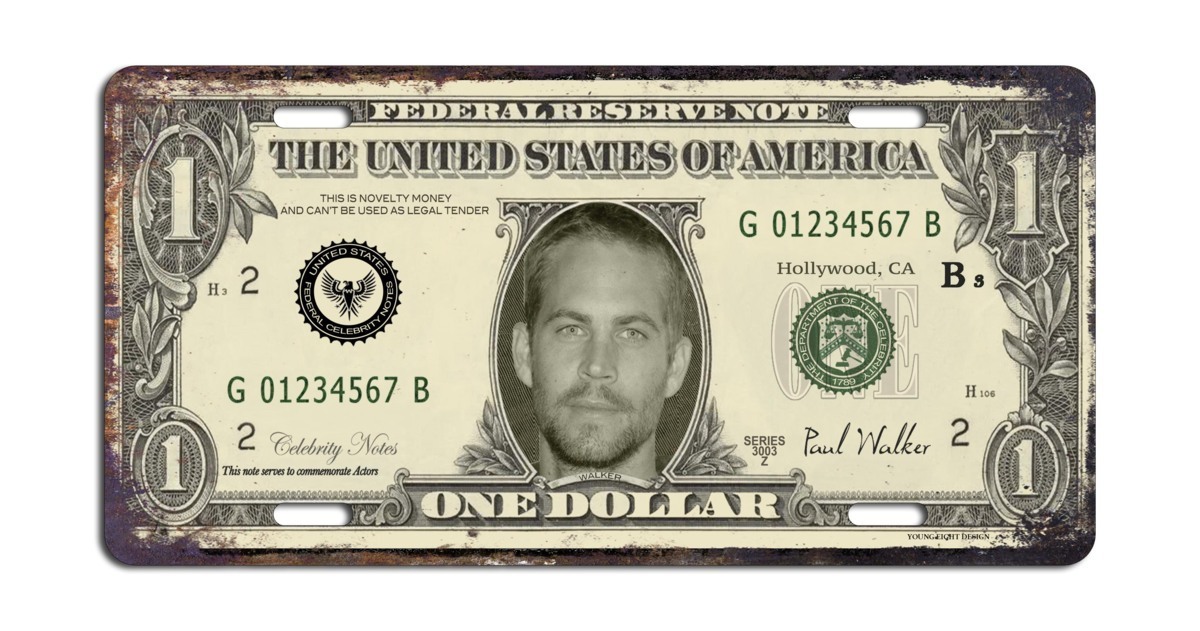 アメリカン雑貨!!ポール・ウォーカー/Paul Walker/ワイルド・スピード/F&F/ティンサイン/ナンバープレート/ブリキ看板/USAドル札$柄-1