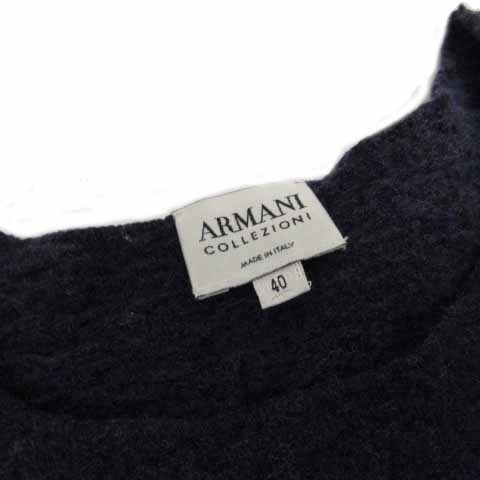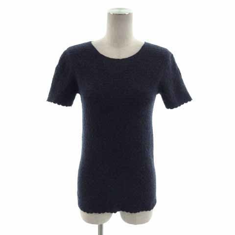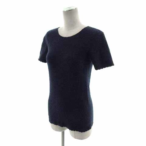 アルマーニ コレツィオーニ ARMANI COLLEZIONI ニット セーター 半袖 スカラップ 立体編み ネイビー 紺 40 レディース
