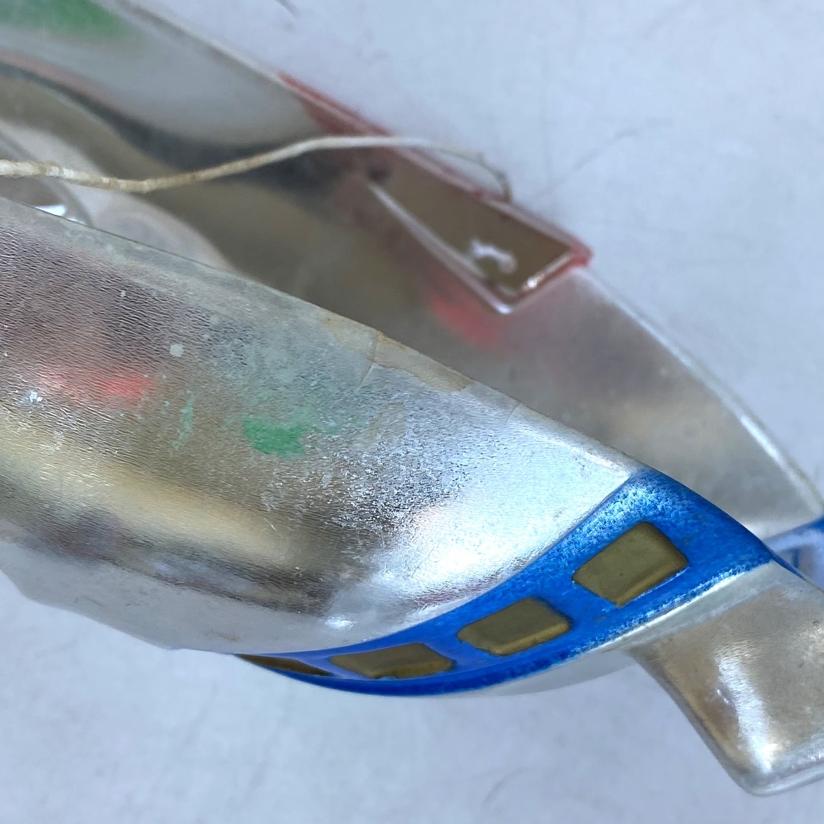歪んでいるほか、スレ、傷、シミ、汚れ、塗装のハゲなど経年の傷みがあります。