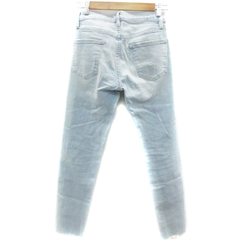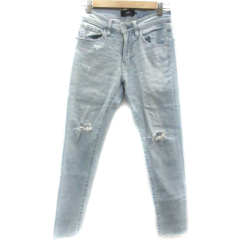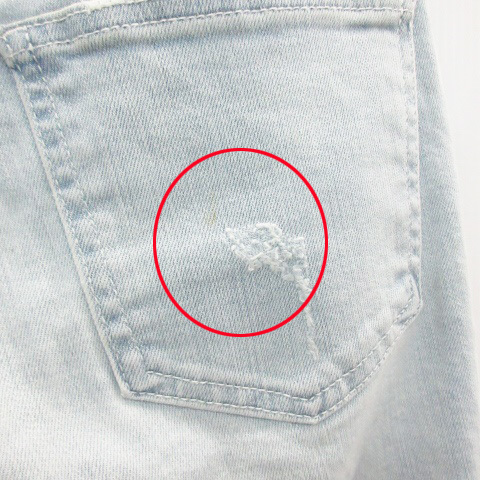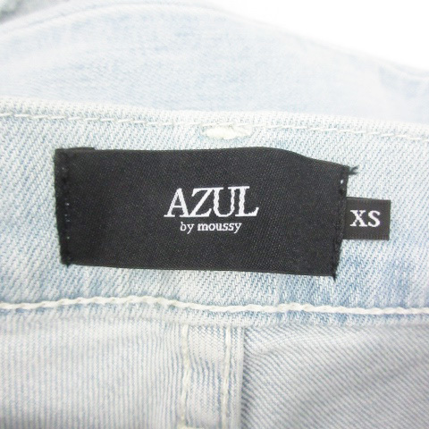 アズールバイマウジー AZUL by moussy デニムパンツ ジーンズ スキニー ロング丈 カットオフ ダメージ加工 XS ライトブルー レディース