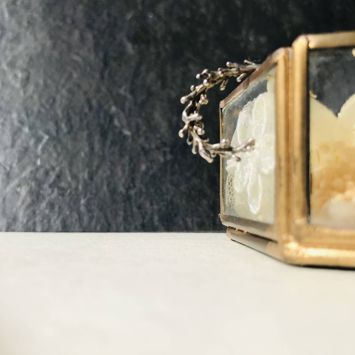 こちらのデザインは現在販売はされていないようです、KAORUならではの繊細なデザインで小ぶりですがつけると存在感があります。細工は細かく丁寧で、手仕事でジュエリーを作られるこちらのブランドならではの完成度の高いお仕事ぶりです。