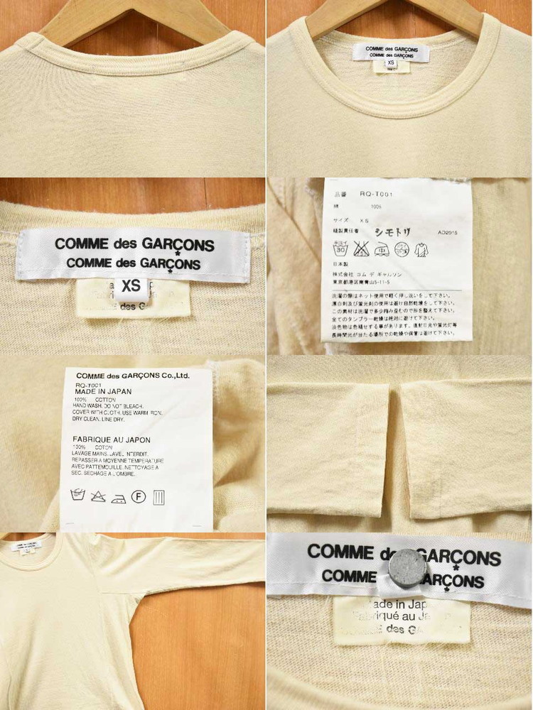 商品詳細 | 「COMME des GARCONS COMME des GARCONS」通称コムコムの長袖Tシャツです!絶妙な色味の生成り色などがとても良い雰囲気ですのでコーディネートのポイントとして大活躍してくれます!本当にお勧めです!シンプルだからこそ、こだわりたい方に! コムコムは2005年にrobe de chambre COMME des GARCONSと統合され、今やあまり市場にも出てこなくなりましたので本当にお勧めです! ■状態 USEDグレード[B] 1. ボディ:洗濯等による色あせ/色ムラ/生地スレ/毛羽などあり ※USED商品ですのでそれなりの使用感があります。予めご了承ください。 状態について 記載していない小穴や小ダメージ、薄い汚れ、細かい汚れ、その他などある場合があります。 またもともと特殊加工(ホツレ加工やウォッシュド加工など)が施されている場合もあり、実際の使用感との境界線はあいまいですのでご了承下さい。 上記を含め「それなりの使用感」としておりますので予めご了承下さい。 ■サイズ[単位:約/cm] 表記・・・XS 着丈・・・53.5 身幅・・・42.5 裄丈・・・ 袖丈(脇下計測)・・・43.5 ※身幅、袖丈は脇下の三角部分の端から計測しています。 ※コムデギャルソンはシーズン毎にサイズ感が異なり、また変則的なデザインも多いブランドですので実寸を参照して下さい。 ■商品詳細 ブランド・・・COMME des GARCONS COMME des GARCONS 商品名・・・長袖Tシャツ 生産国・・・日本 製造年・・・2015年 色&柄・・・アイボリー 素材・・・綿:100% カラーについて 撮影やご覧のモニターなどによって商品写真の色味が変わることがあります。 色味についてのイメージ違いなどの理由によっての返品はお受け出来ませんので 気になる点などございましたらご購入前に必ずお問い合わせください。 |