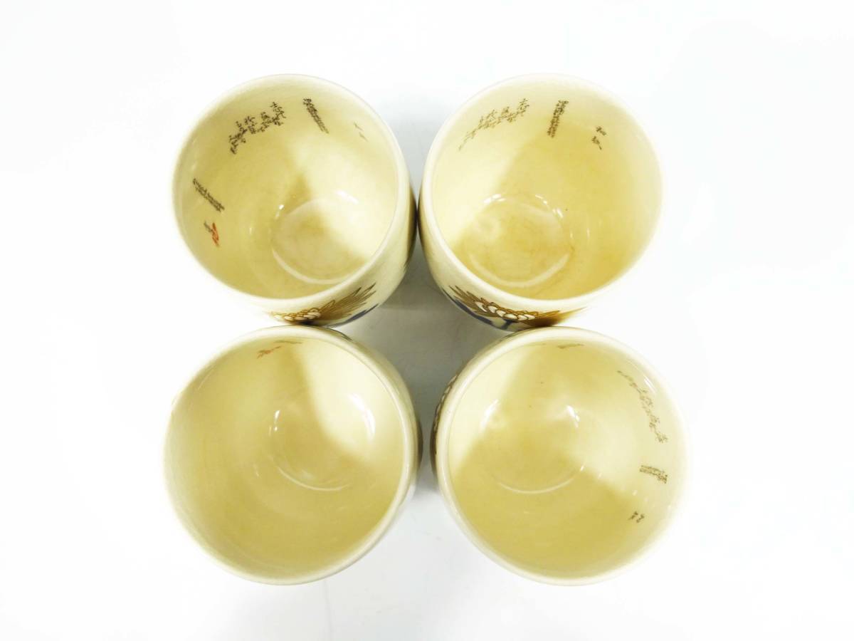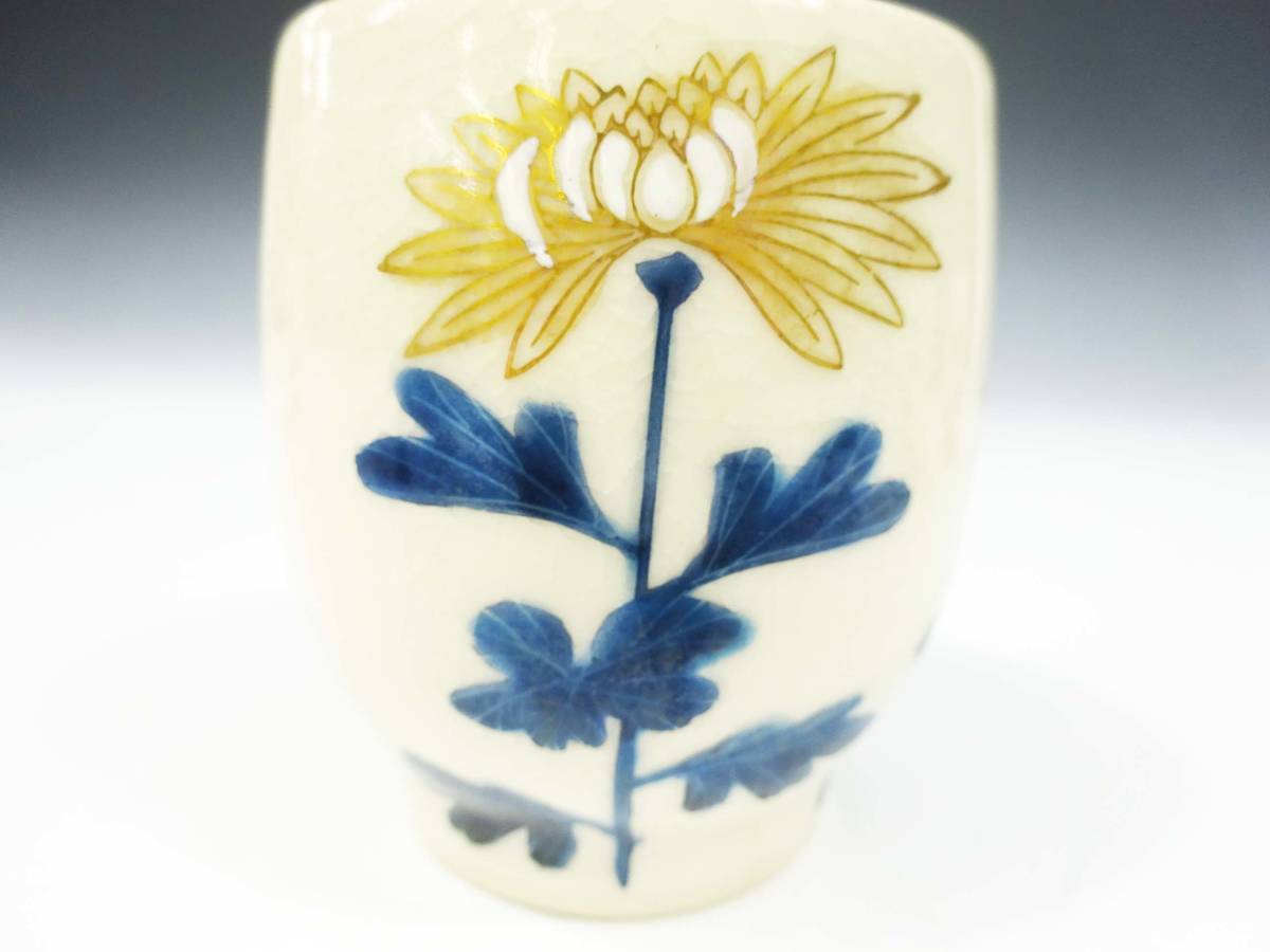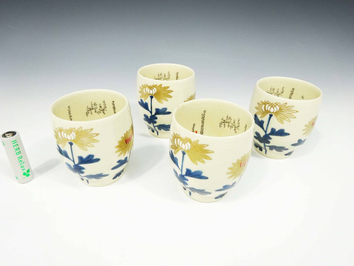 ◆(MK) 九谷陶山 九谷焼 湯呑 4客セット 湯飲み 菊柄 花柄 和食器 キッチン雑貨 貫入 茶器 ぐい呑み 伝統 工芸 レトロ 和風